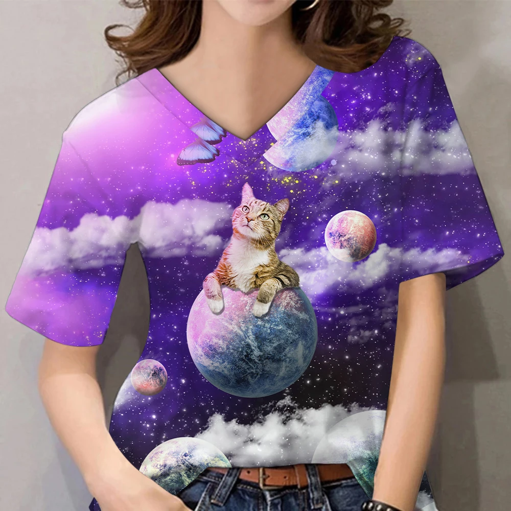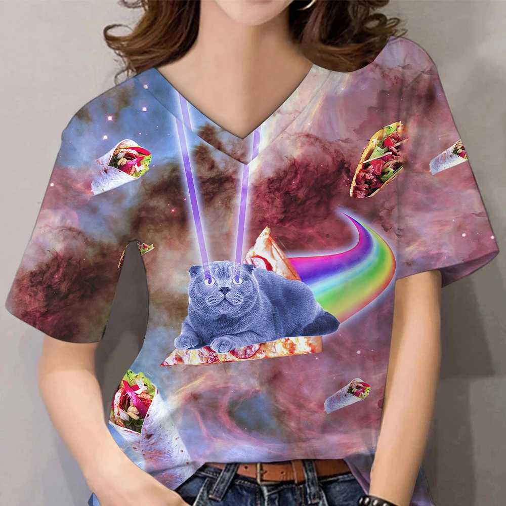 Name | 3d V Neck Women T Shirts Rainbow Cat Print Fashion Funny Casual Clothing For Girls Summer Harajuku Streetwear Oversized Tops 5XL |