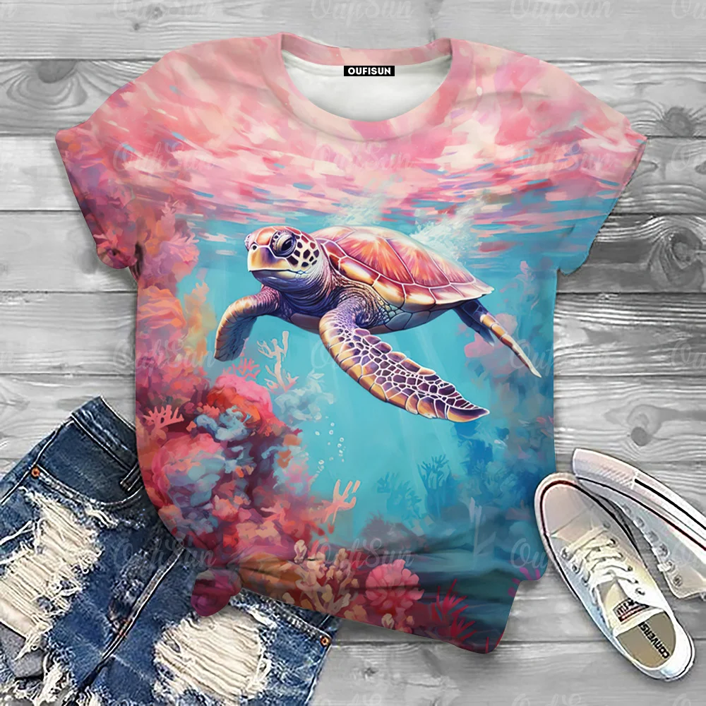 2024 Top Women Turtles Printed Women's T-Shirt Oversized T-Shirt Popular Clothes Women Clothing Animal Short Sleeve Tees Female