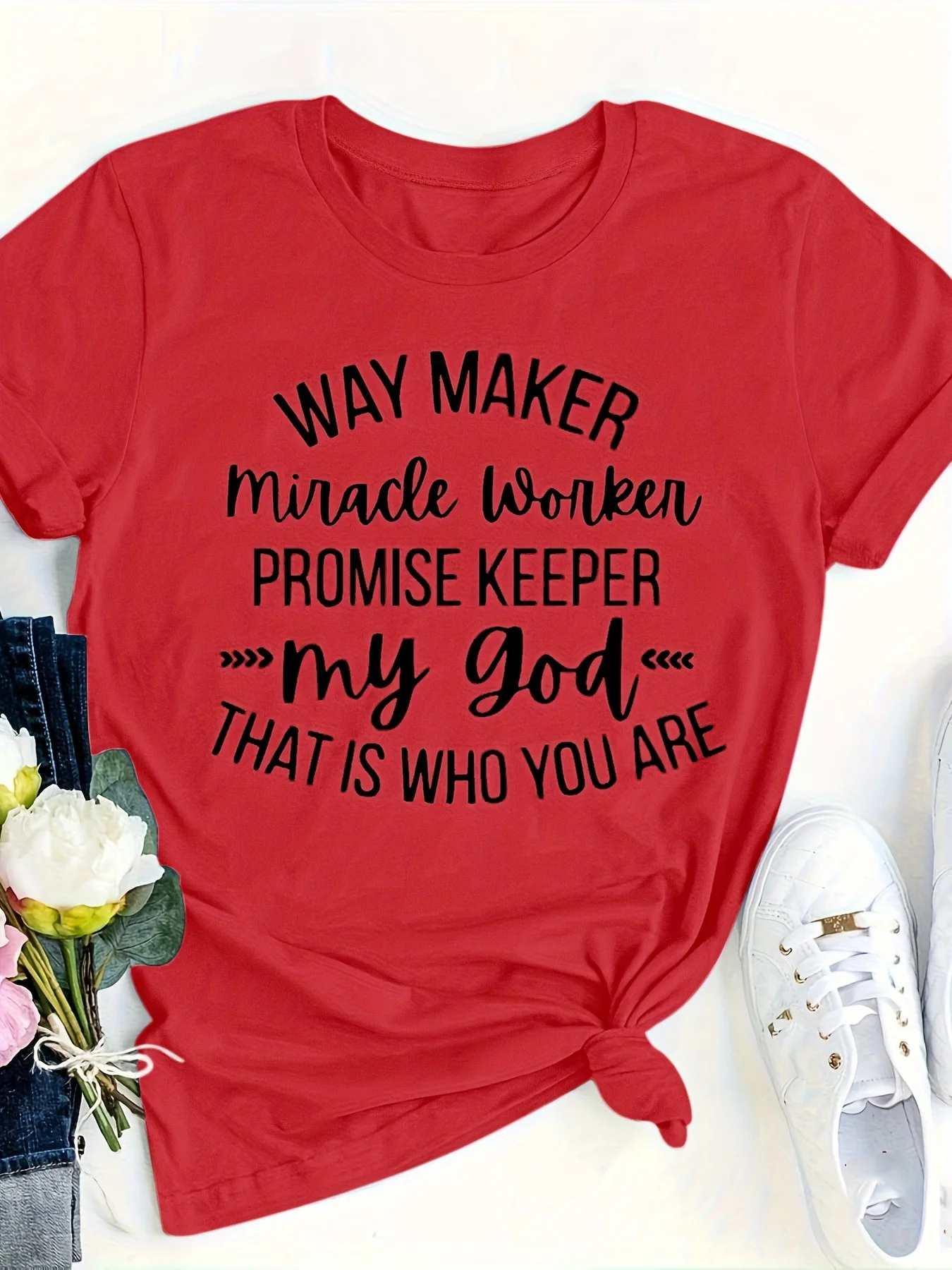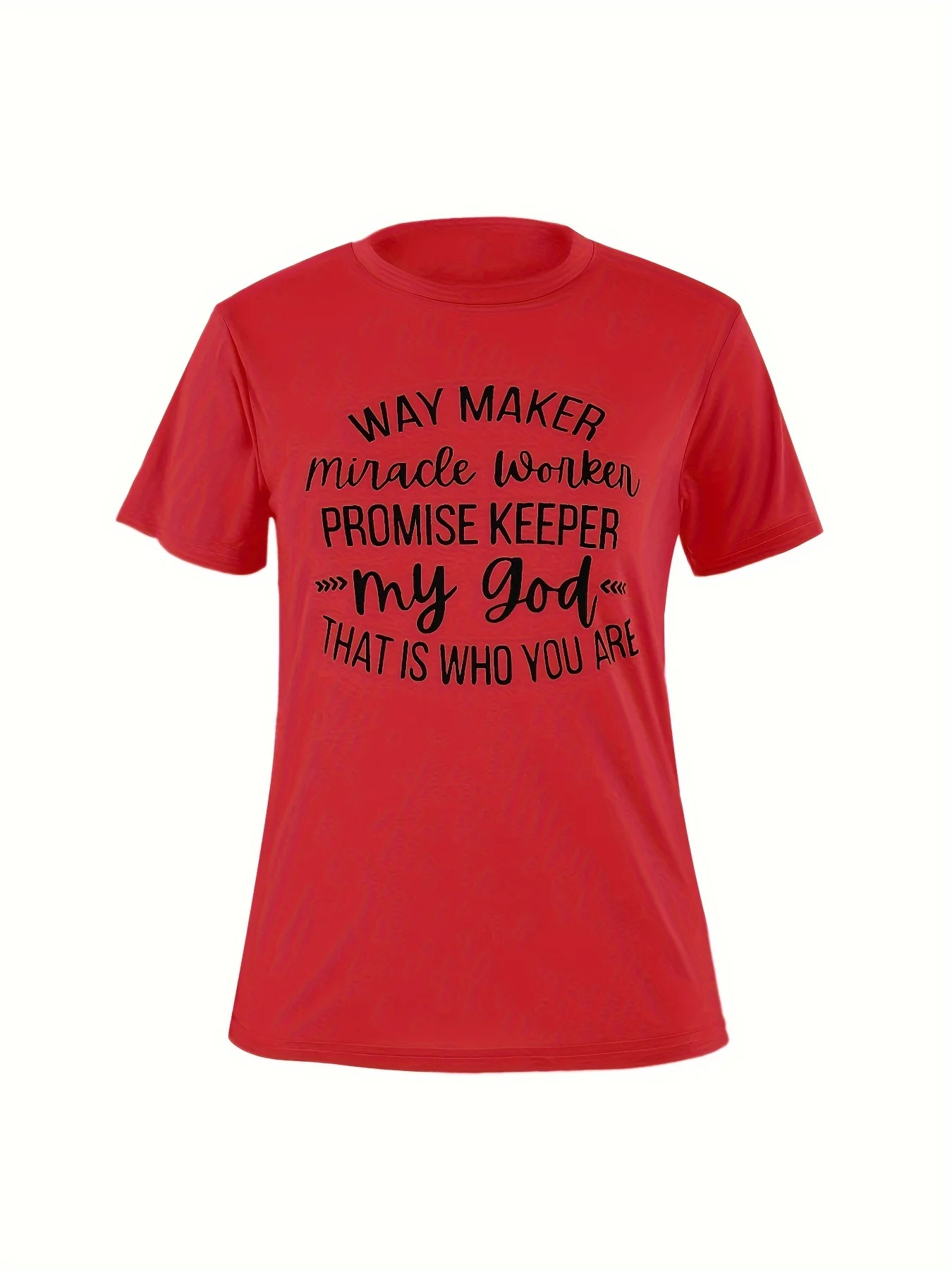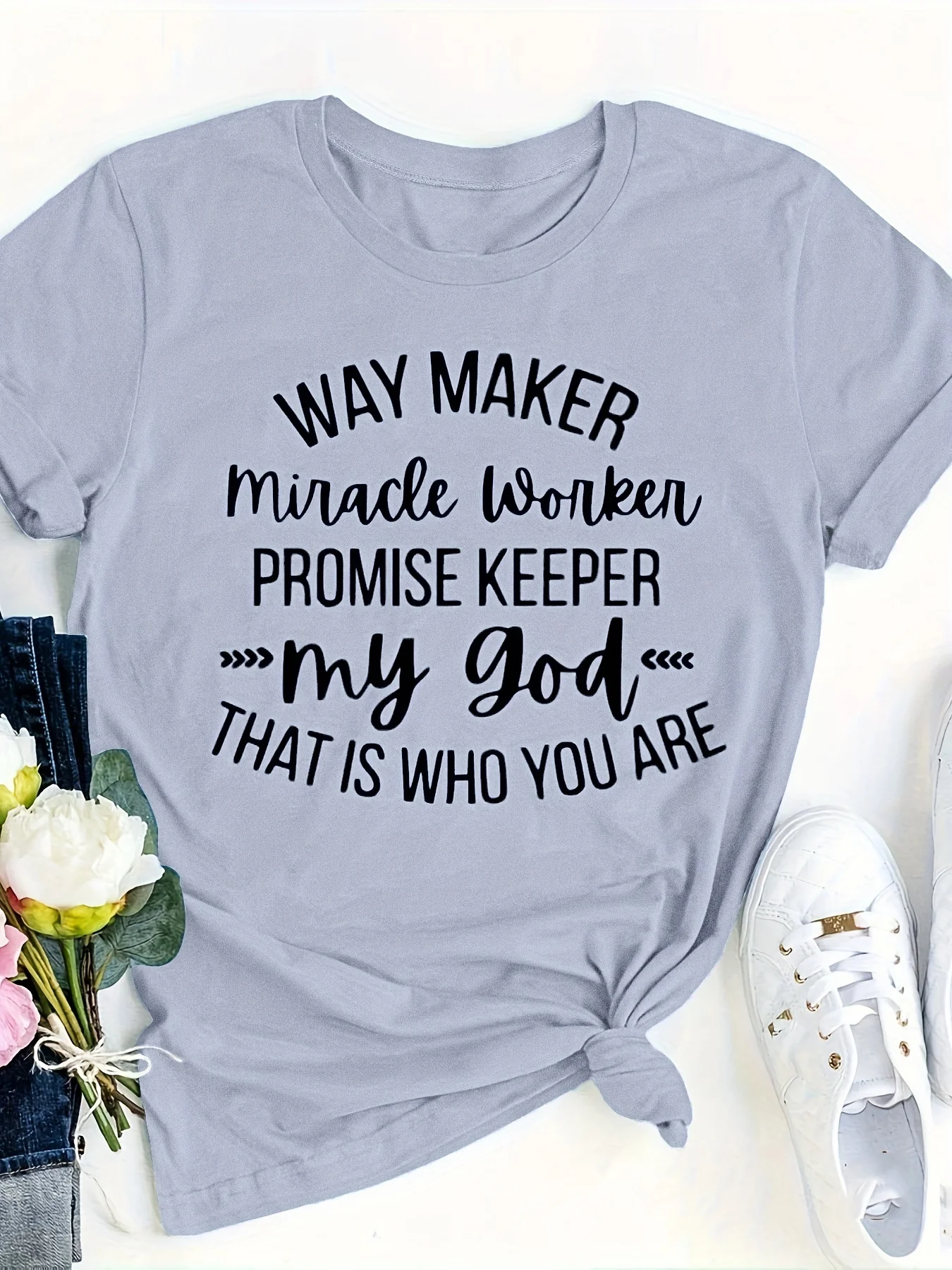 Way Maker Letter Print T-shirt, Casual Crew Neck Short Sleeve Summer T-shirt, Women's Clothing