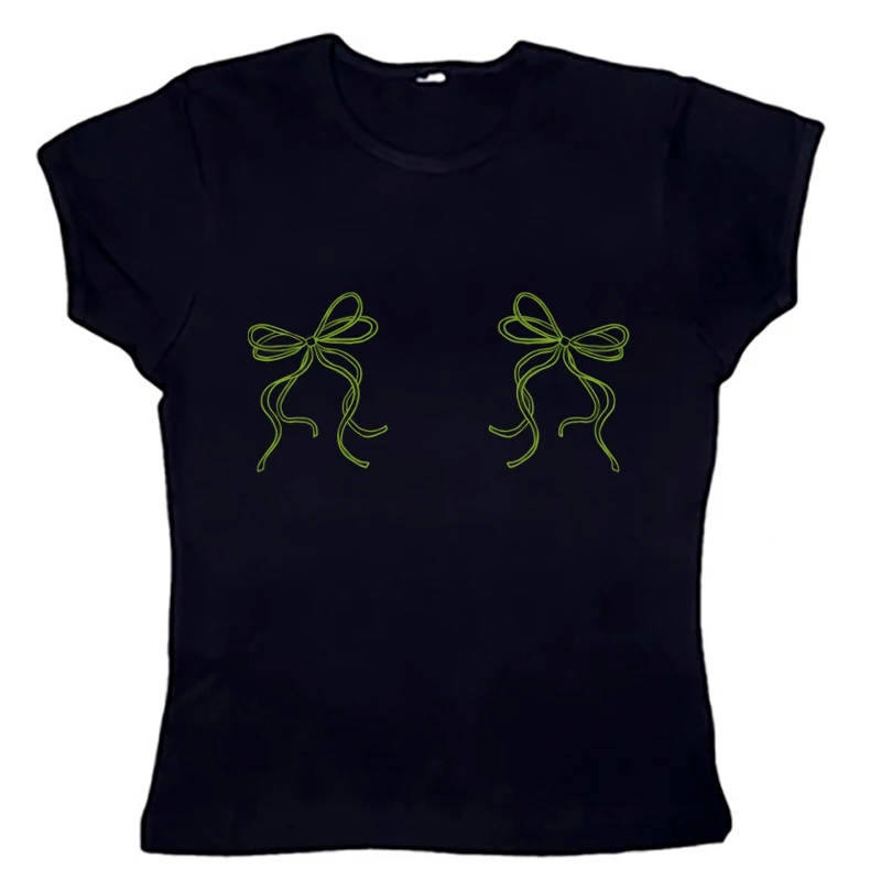 Women's T-shirt crop top Y2k Kawaii cute bow pattern Harajuku summer short sleeved baby T-shirt street wear women's clothing EMO