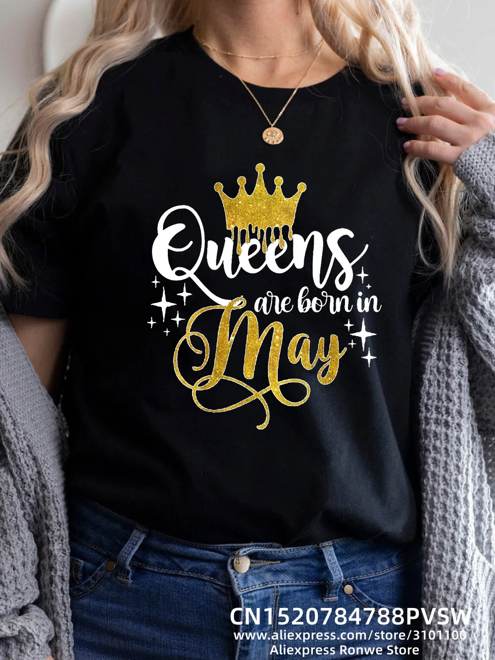 May Birthday Queen Women Girl Y2K Print T-shirt Summer O Neck Black Harajuky Lady Tees Tops Female Streewear Clothes,Drop Ship