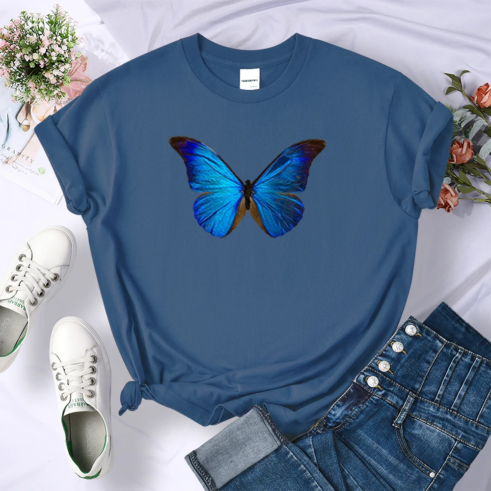 Blue Butterfly Street Fashion T Shirt Womens Fashion Loose Brand Tshirt Summer Streetwear Tops Casual Oversize Women Clothes