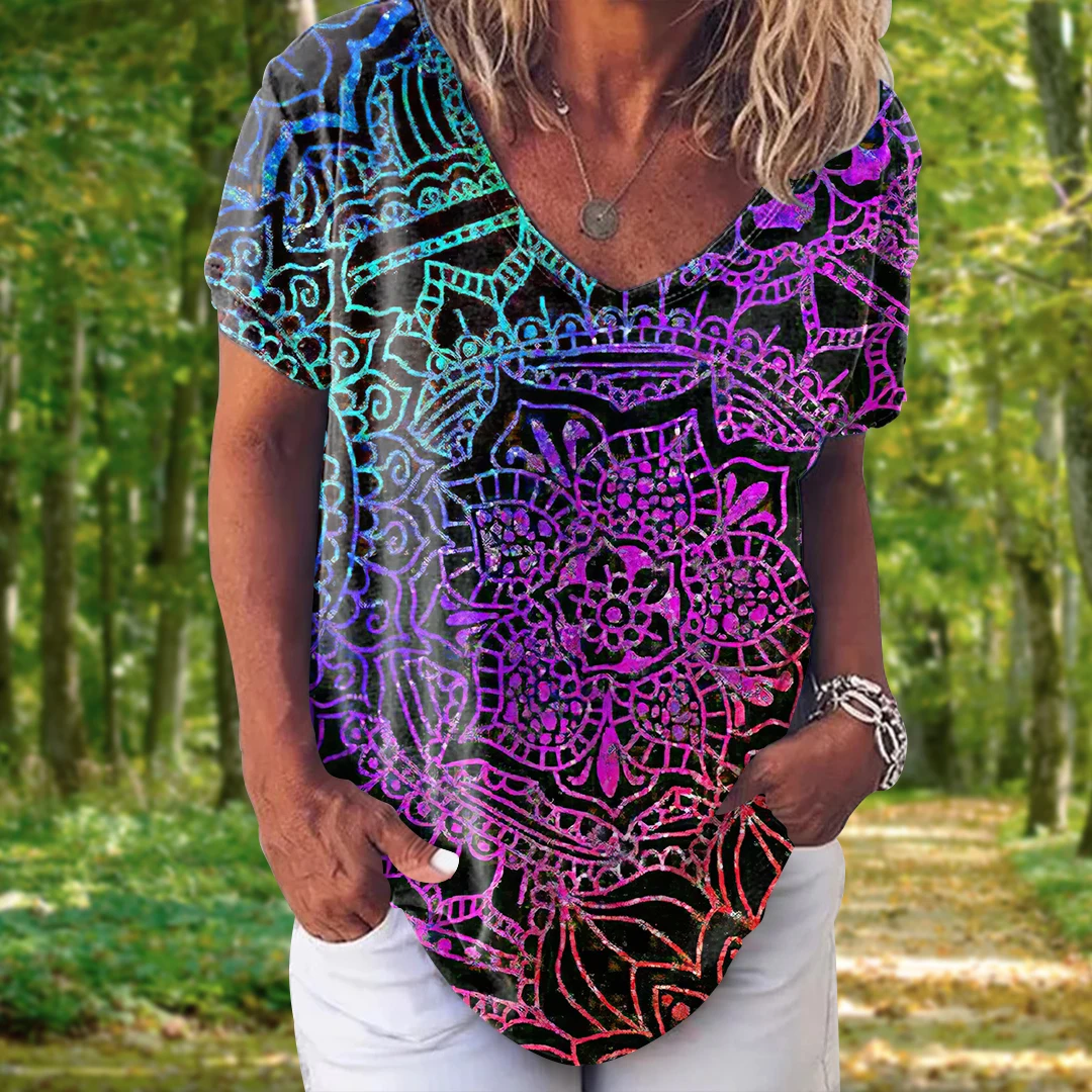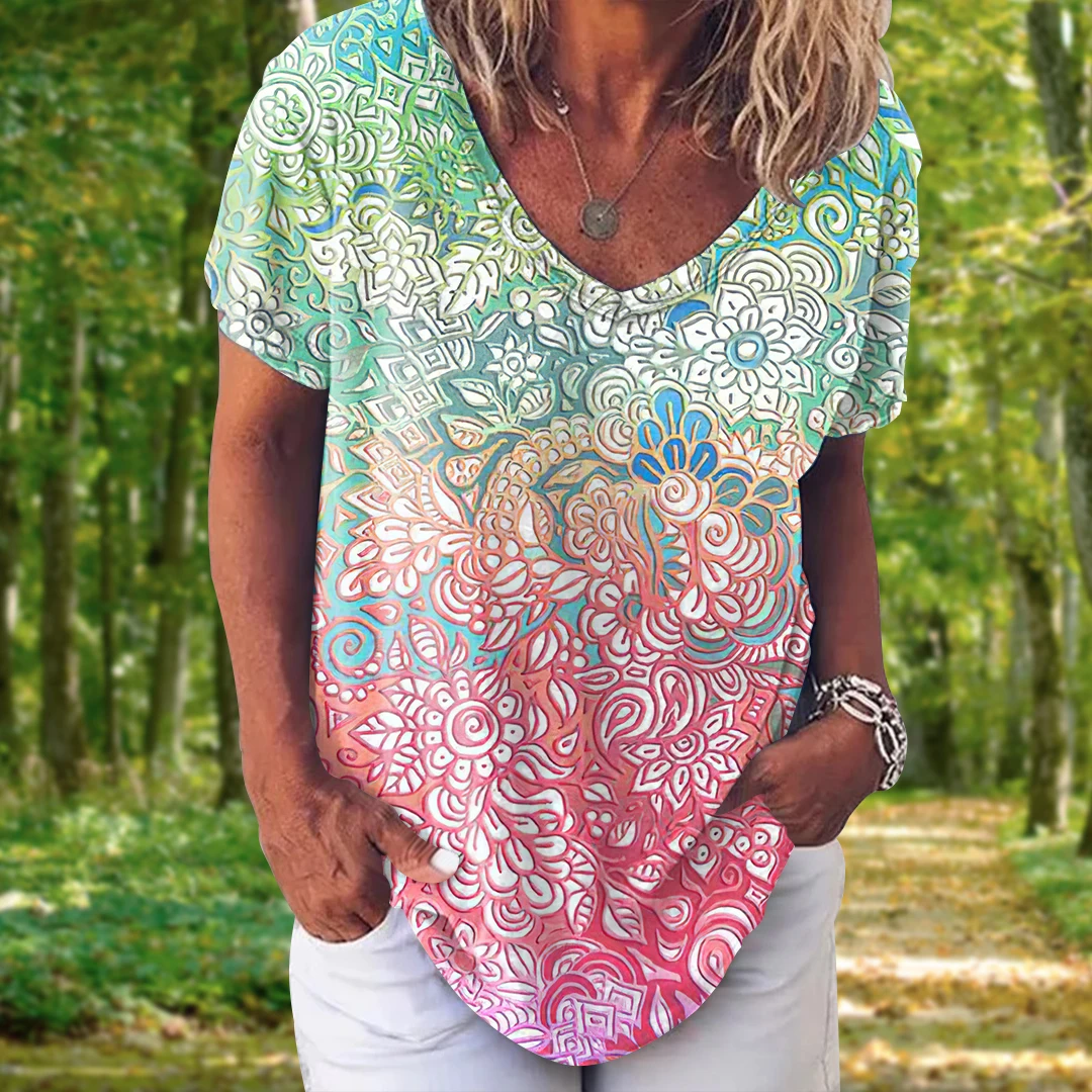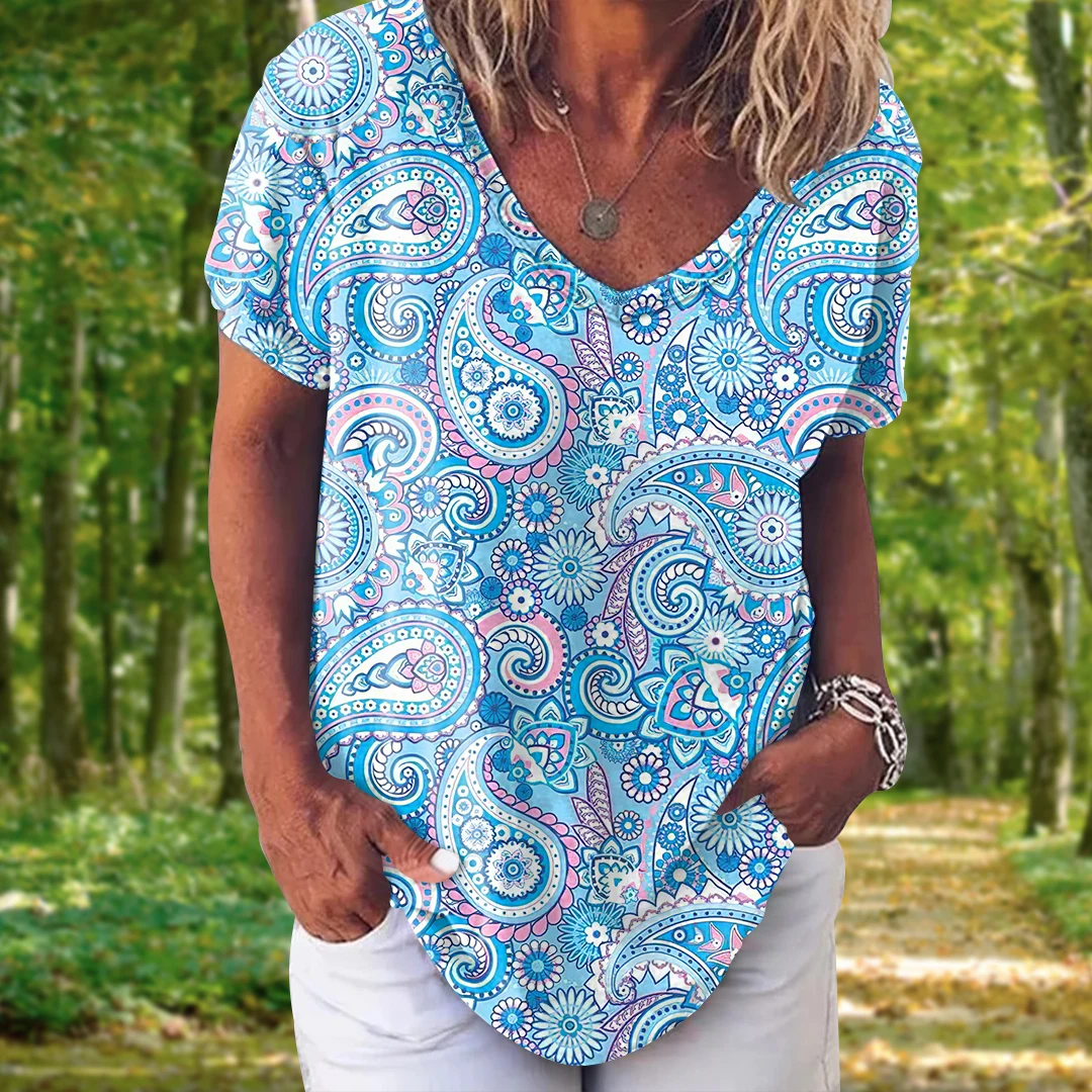 Fashion Women's T-shirt 3d Floral Print Tops Tees V Neck Short Sleeves Female Clothes Summer Large Size T Shirt Womans Clothing