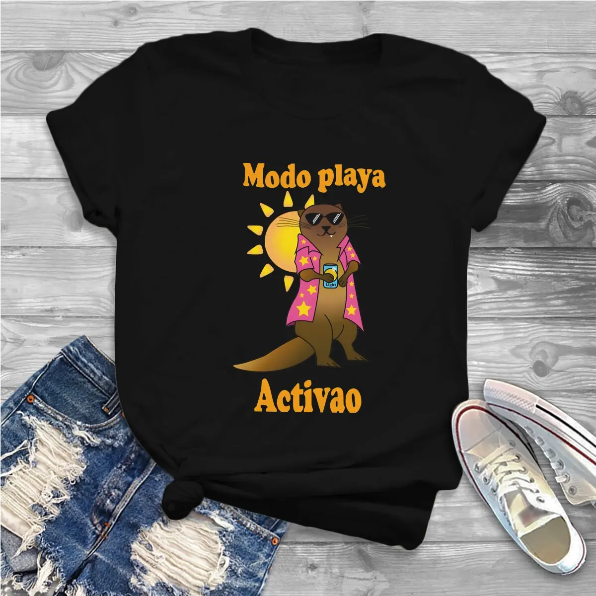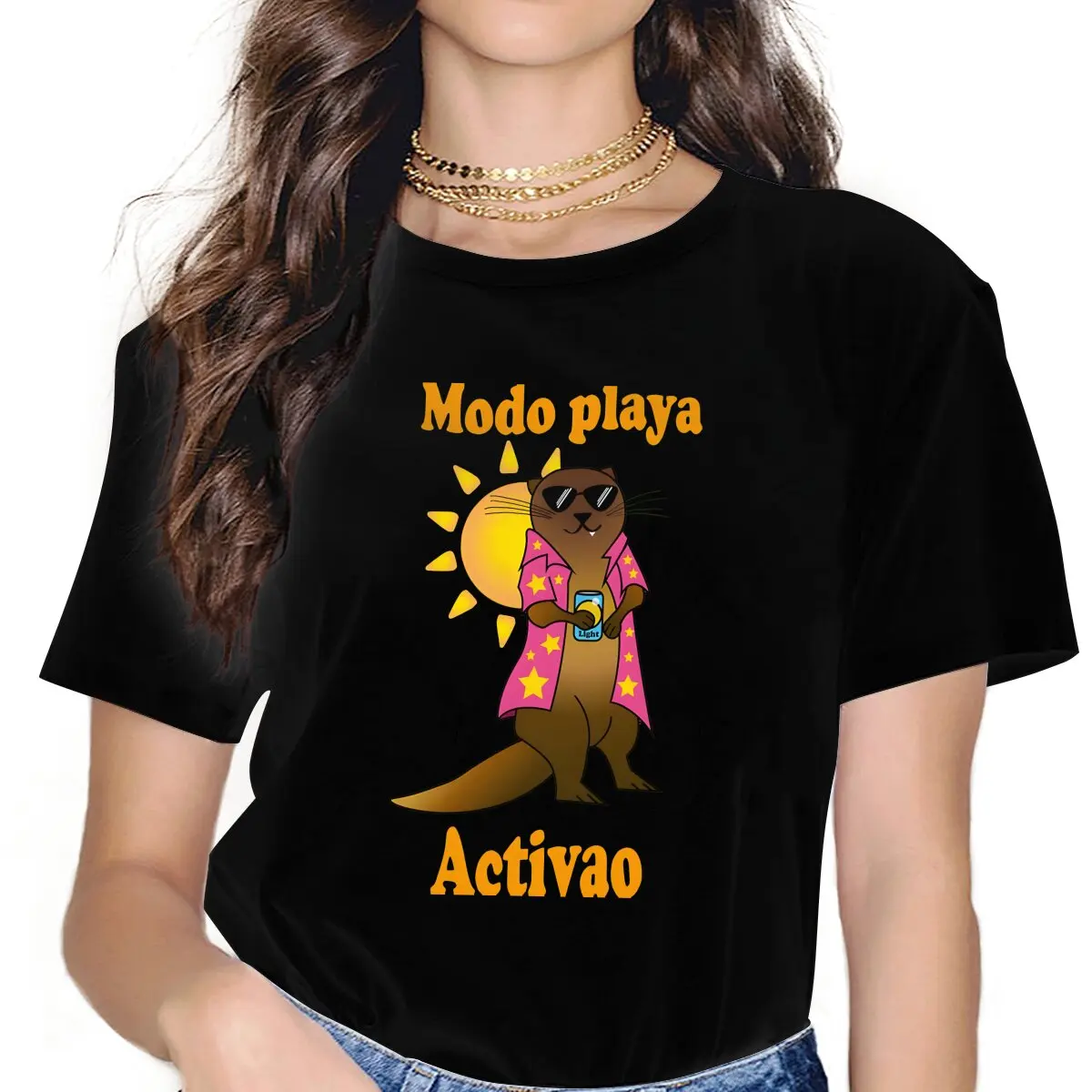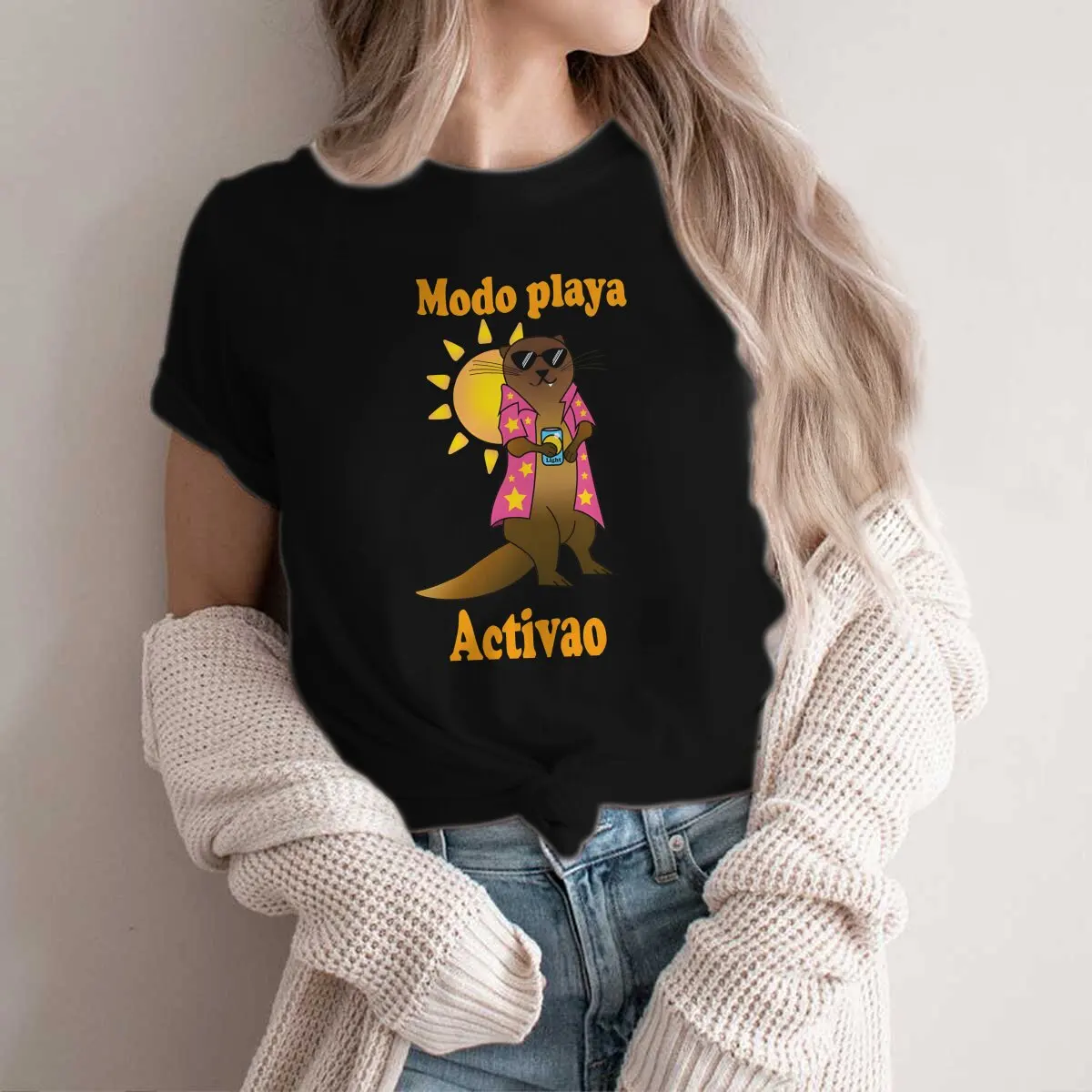 Otter And Beach Hipster Polyester TShirts Otter Female Harajuku T Shirt O Neck