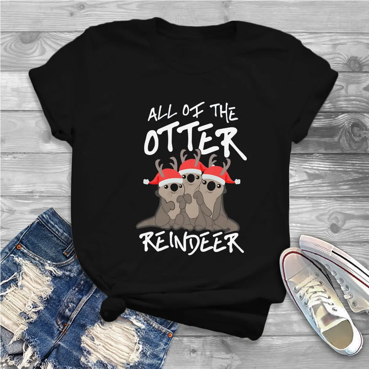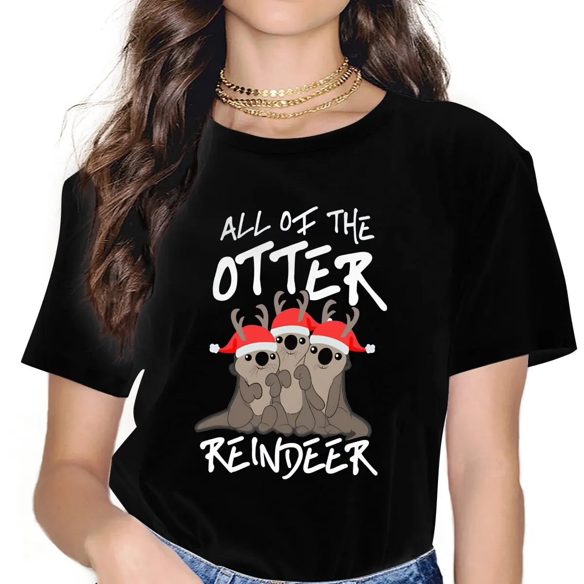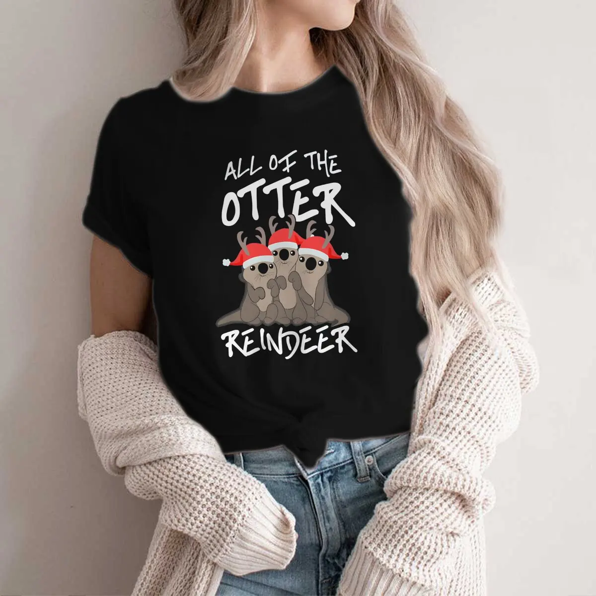 All Of The Otter Reindeer Harajuku Polyester TShirt Otter Printing Streetwear Leisure T Shirt Women