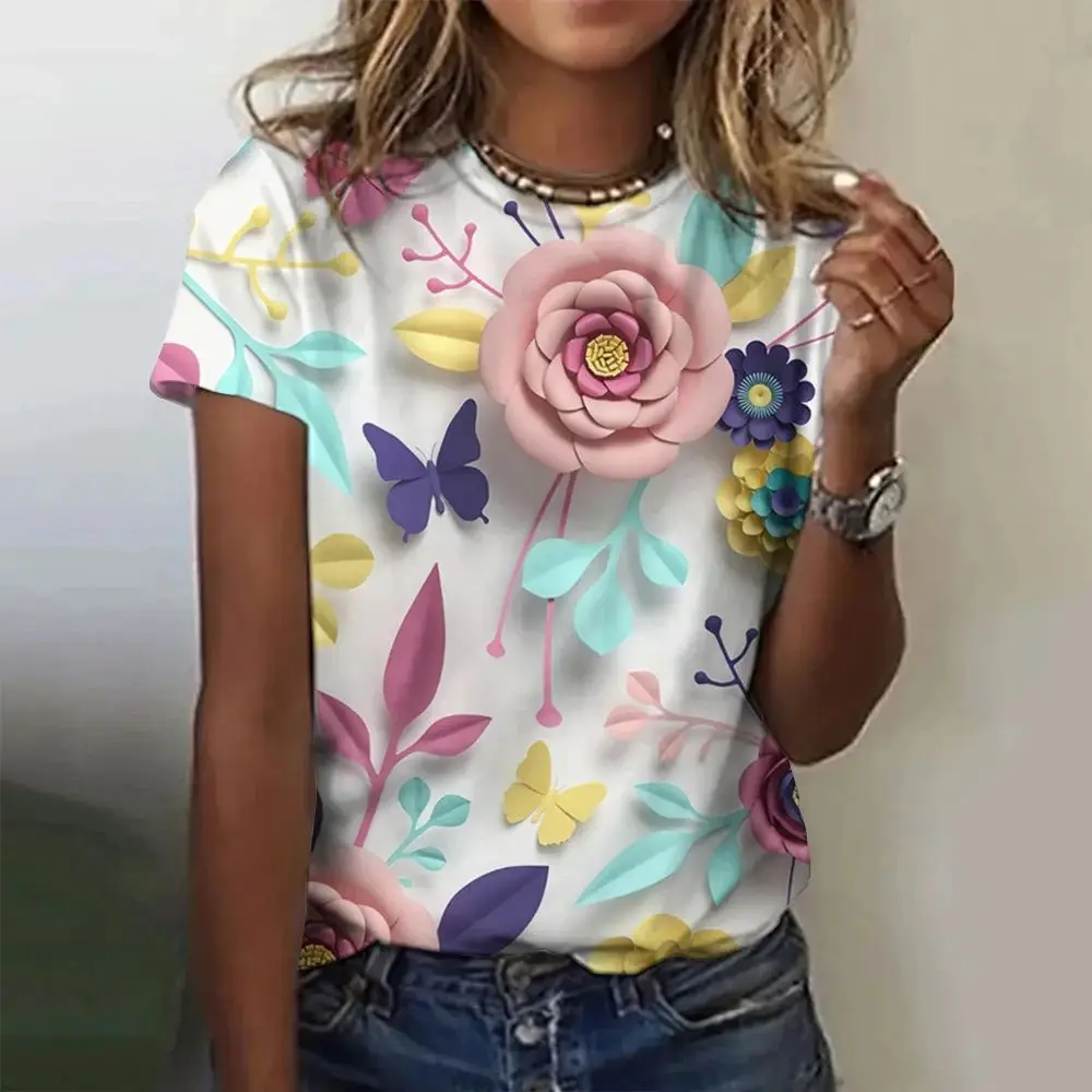 Women's T-Shirts 2024 Summer Fashion 3d Butterfly Print Short Sleeve Top Female Clothing O Neck Oversized Tees Harajuku T Shirts