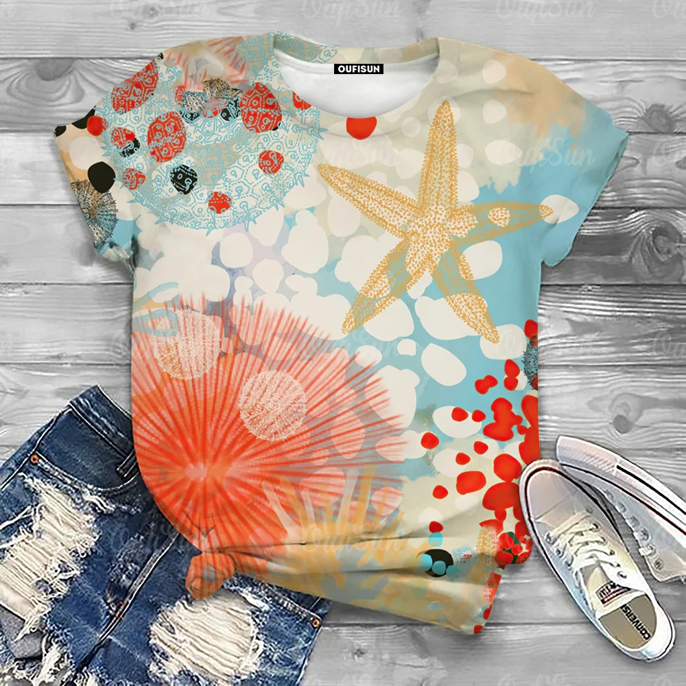 2024 Top Women Sea Animal Printed Women's T-Shirt Oversized T-Shirt Popular Clothes Women Clothing Beach Short Sleeve Tee Female