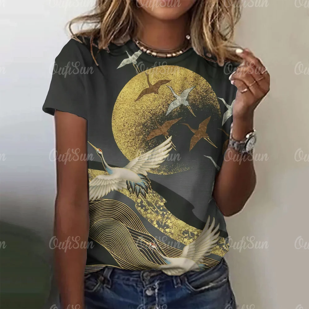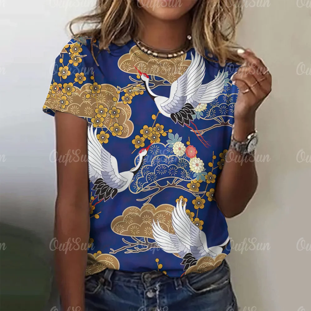 Chinese Style Women's T-shirt 3D Print Harajuku Clothing For Ladies Summer O Neck Casual Short Sleeve Tees Female Oversized Tops