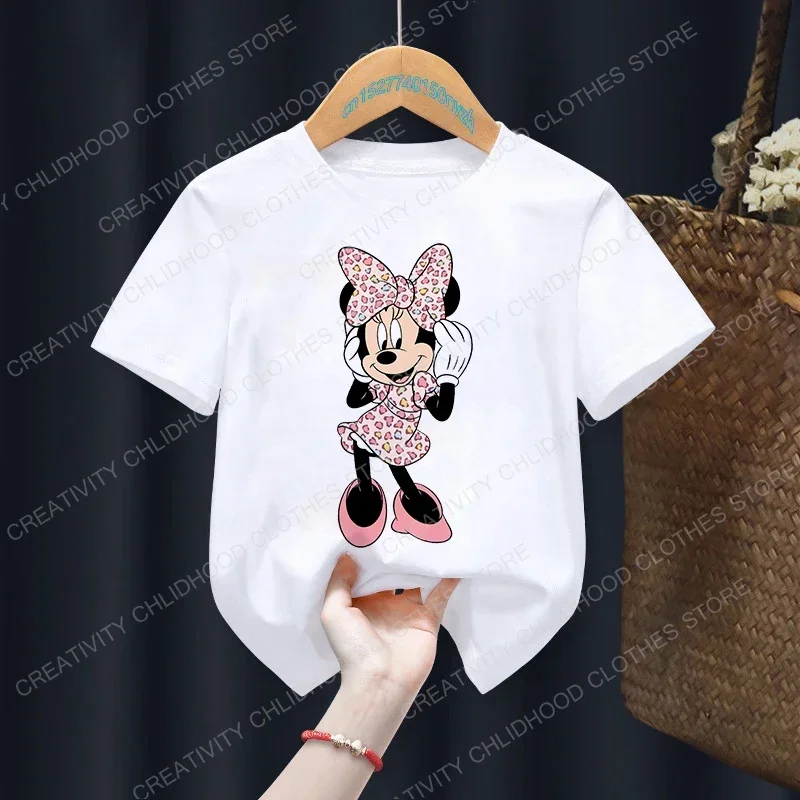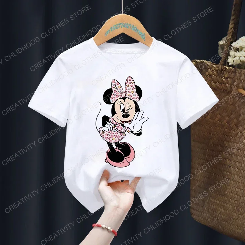 Minnie Children T-shirt Kawaii Disney T Shirt Floral Mickey Mouse Anime Cartoon Casual Clothes Kid Girl Boy Short Sleeve Top Tee