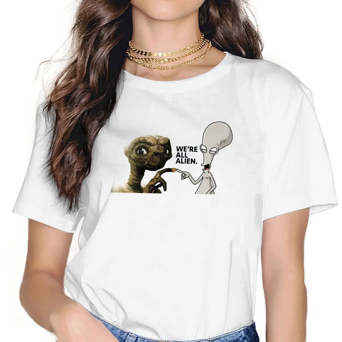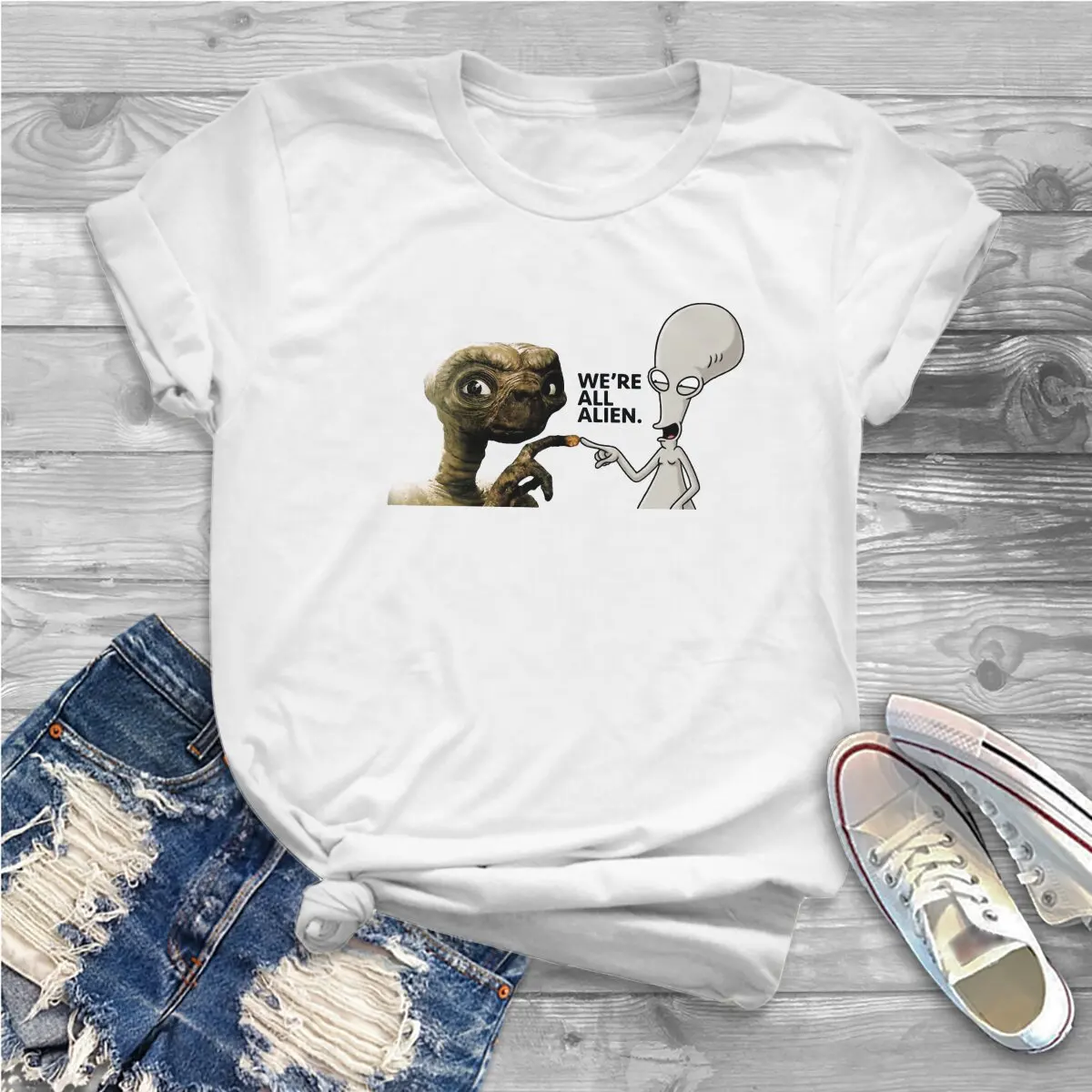 ET AND ROGER ALIEN LOVE The Americans Roger Alien Cartoon Women T Shirt Fibre Fashion O-Neck Polyester TShirt