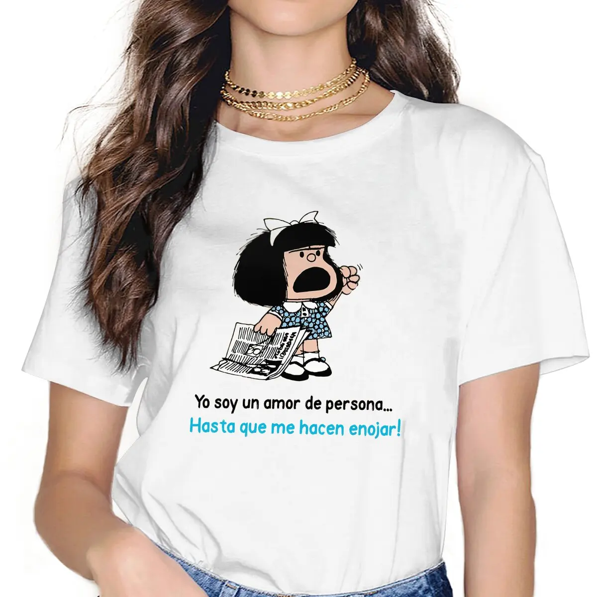 Anime Mafalda Yo Soy Un Amor De Persona Tshirt Homme Women's Streetwear Unisex Polyester Blusas T Shirt For Women