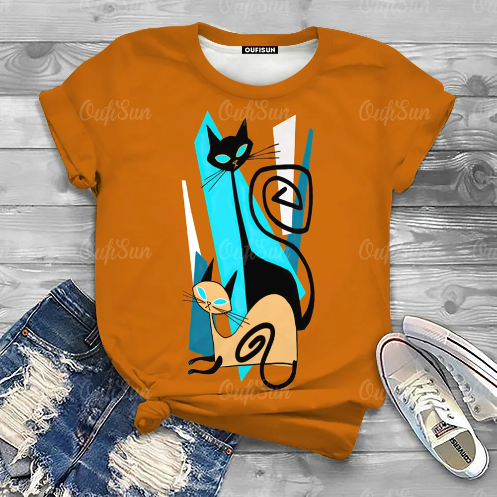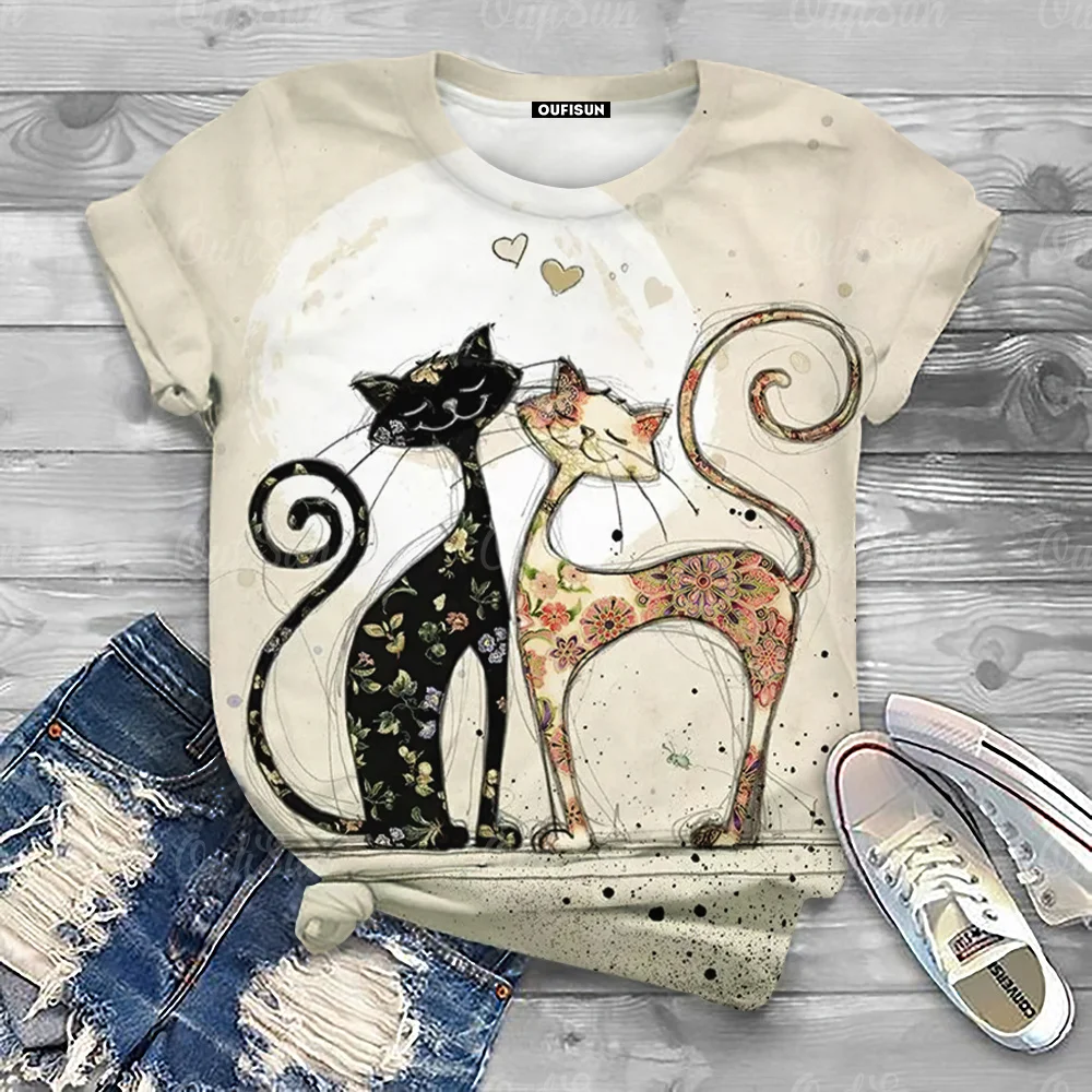 2024 Top Women Cat Printed Women's T-Shirt Oversized T-Shirt Summer Women Clothing Animal Short Sleeve Female Shirt Harajuku