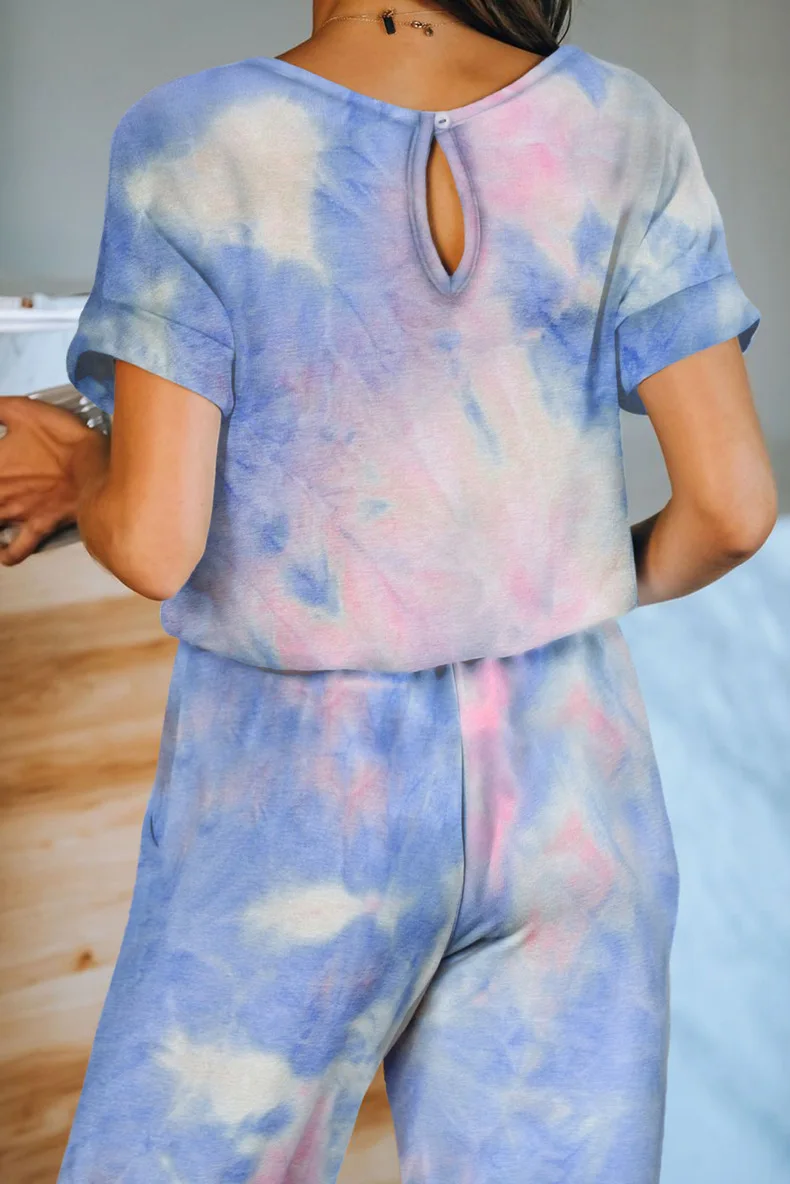 Casual Women Pants Set Tie Dye Short Sleeve T Shirt+Harem Pants Suit Female Loose 2 Piece Outfits Women Two Piece Sets Tracksuit