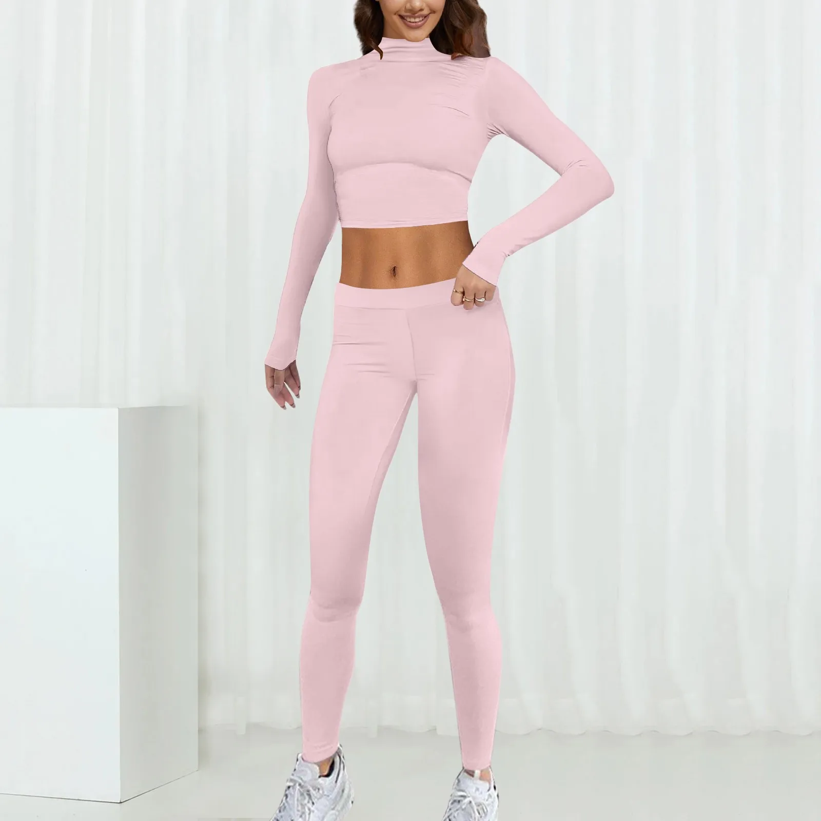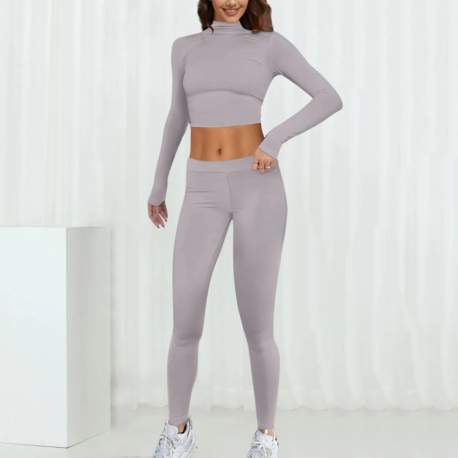 2024 Yoga Set Women Clothing Crop Top Knitted Solid Color Seamless Long Sleeved Pants Yoga Set Sports Two Piece Set Running Suit