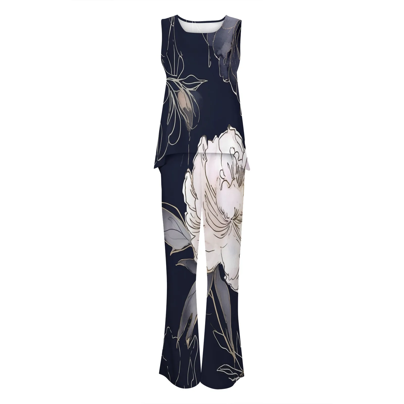Vintage Two Piece Sets Pants Sets Sleeveless Tops Loose Wide Leg Pants Matching Sets Women's Vest Pants Suits Summer Outfits