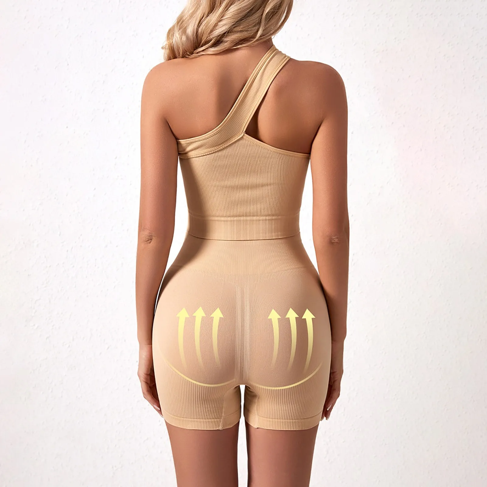 High Sexy Workout Gym 2 Yoga Seamless Suits Set Waist Leggings Women Sports Clothing Tracksuit Shorts Sportswear Fitness Piece