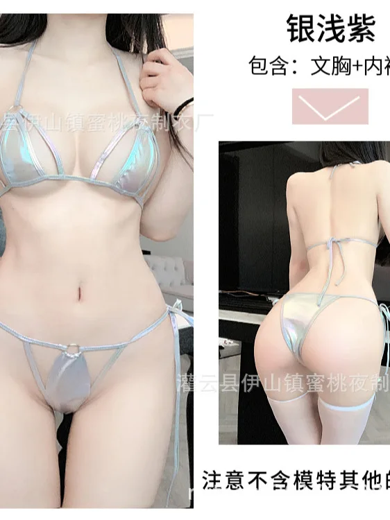 Fun Lingerie Sexy Three Point Laser Bikini Set Mini Neck Strap Bra Pants Temptation BG50
