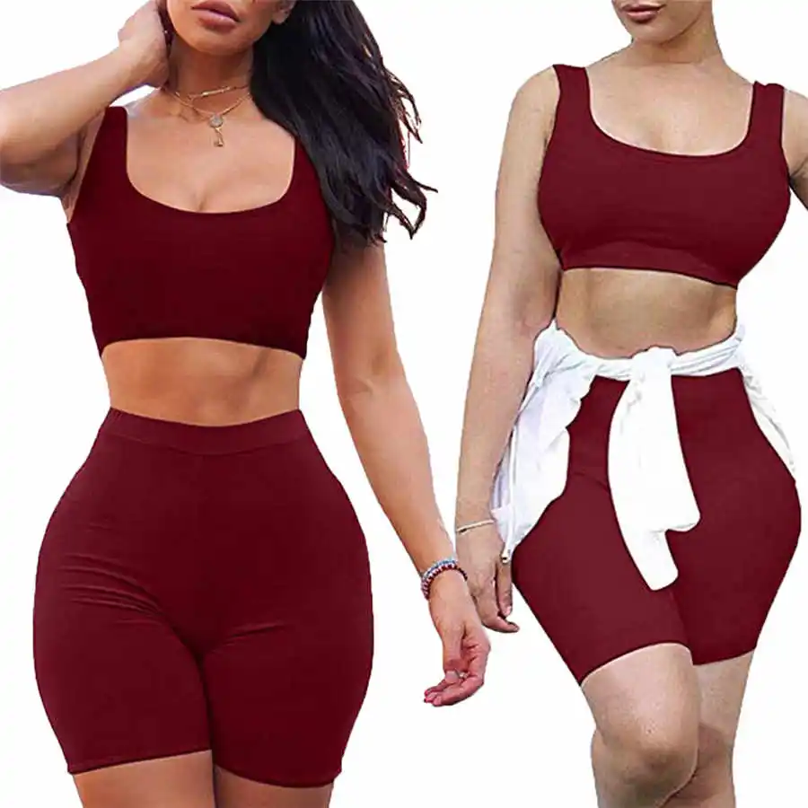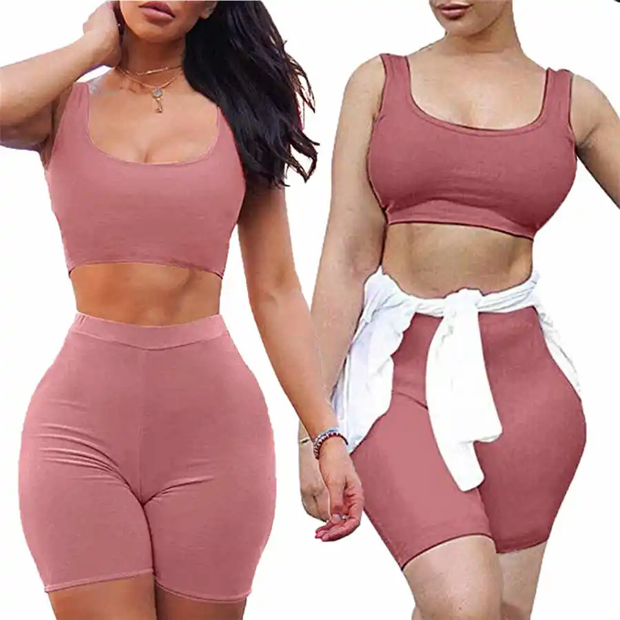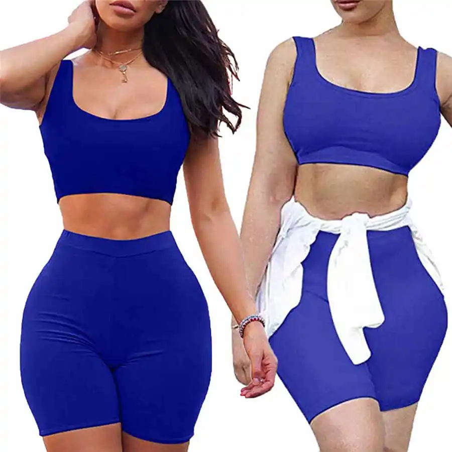 2PCS Women Tracksuit Clothes Set Beach Crop Tops Slim Shorts Pants Bodycon Casual Outfit Sportswear 2019 New