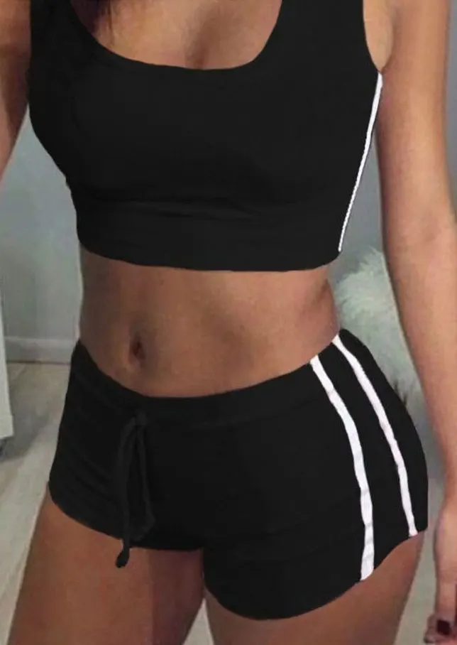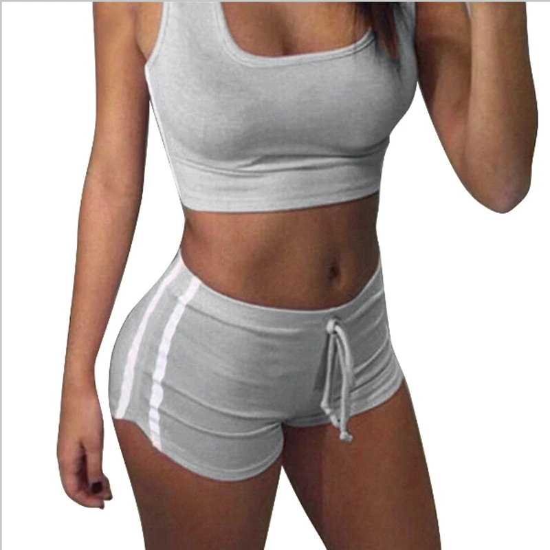 2023 New Summer Women Sportwear 2Pcs Clothes Set Crop Tops Strings Vest Drawstring Shorts Exercise Suit Fitness
