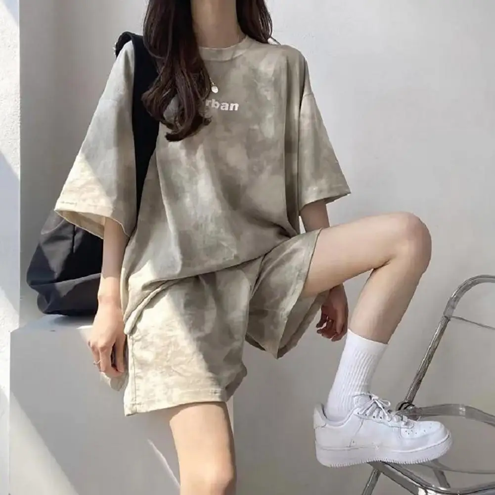 Casual Two-piece Suit Tie-dye Women's T-shirt Shorts Set with Loose Fit Elastic Waist Plus Size Options for Casual Sport Daily