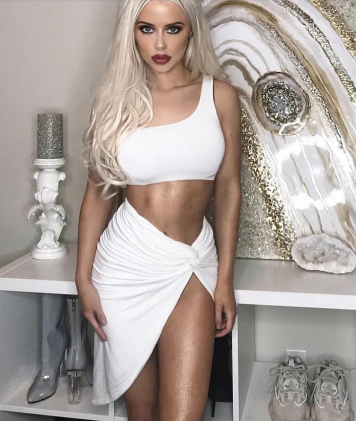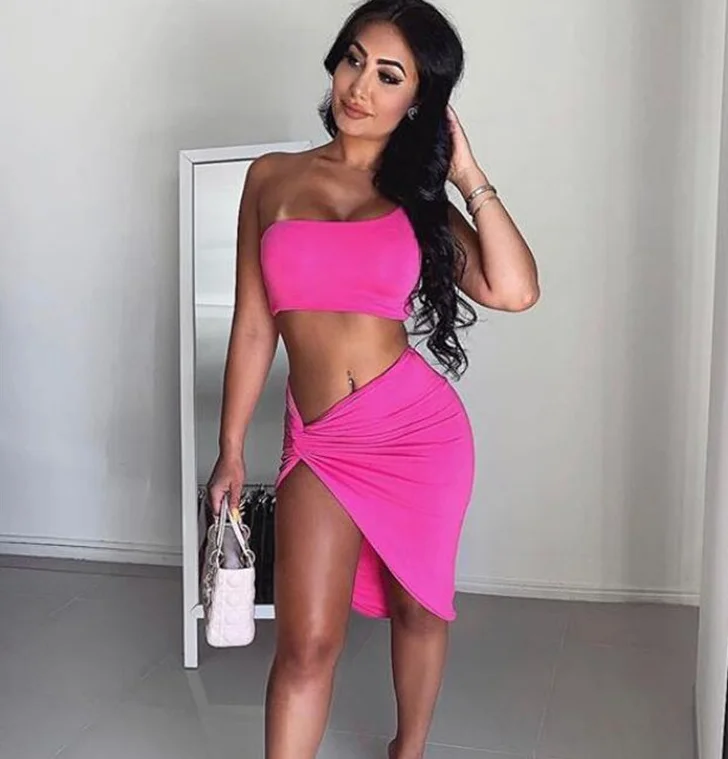 Sexy One Shoulder Two Piece Set Solid bandage Bodycon 2 Piece Set Women Sleeveless Crop Top And Skirt Summer Set