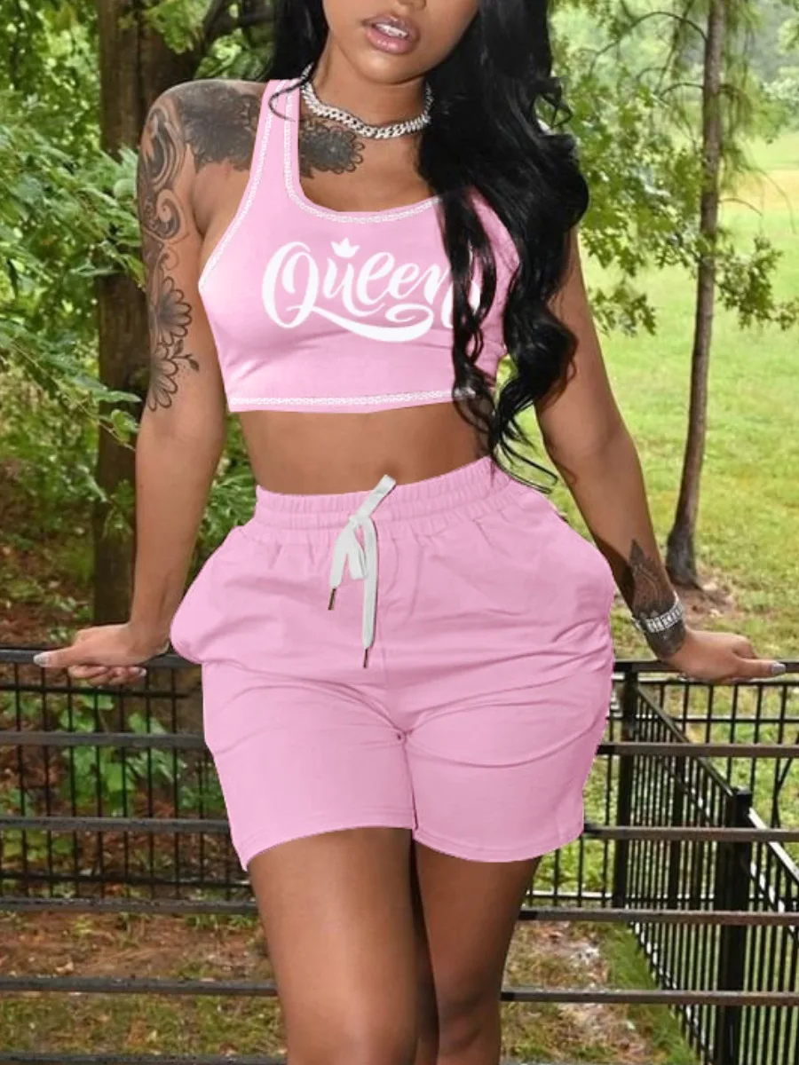 LW Crop Top Letter Print Drawstring Shorts Set Summer Sexy Fashion T-Shirt Shorts sets Female Tracksuit Bodycon Two Piece Set