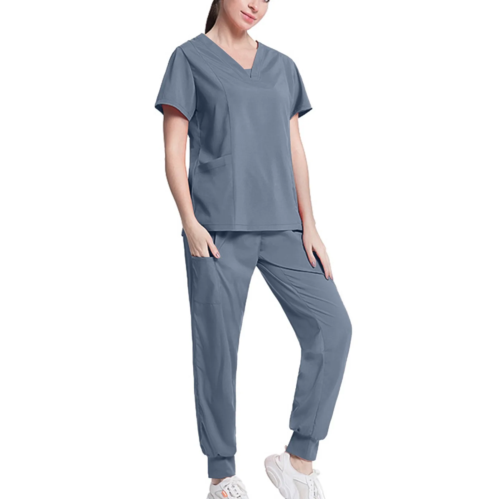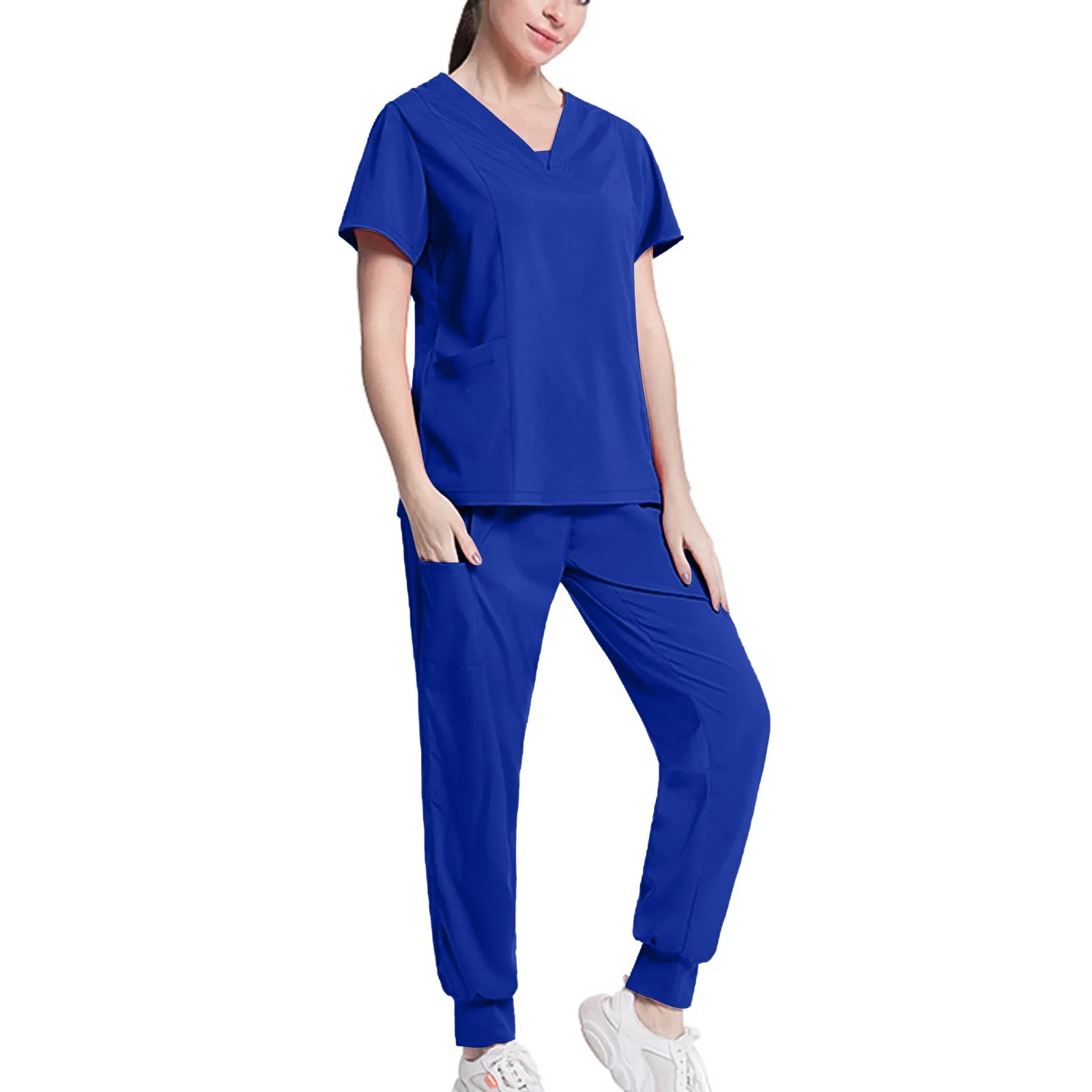 Nursing Uniforms Two Piece Unisex Shorts Scrub Sets Sleeve Pocket Top Tee Loose Pants Beauty Salon Workwear Overalls Plus Size