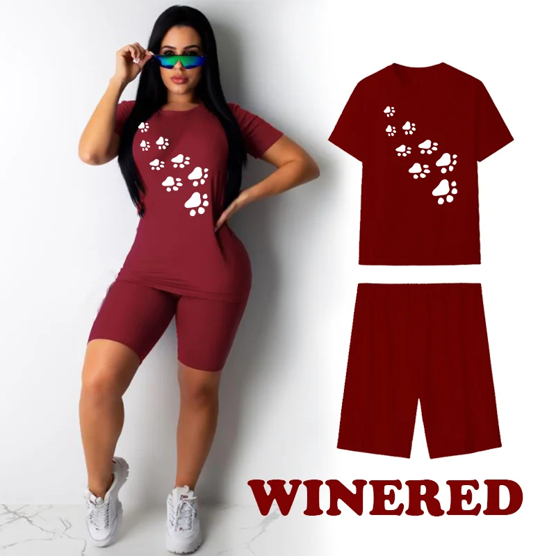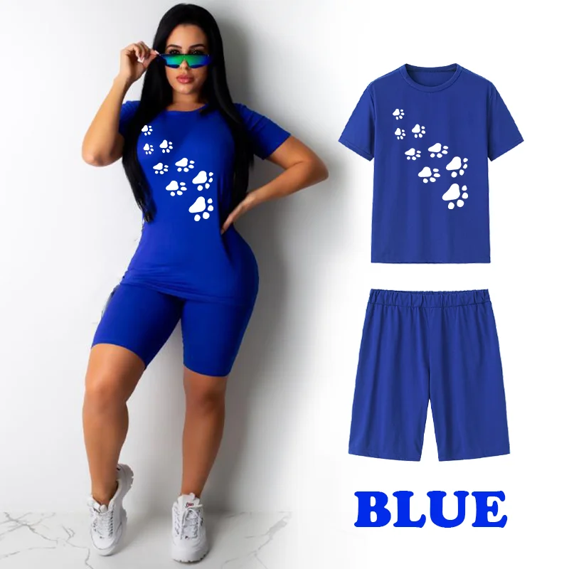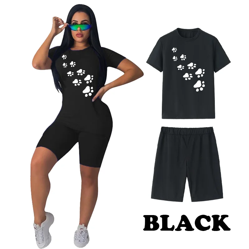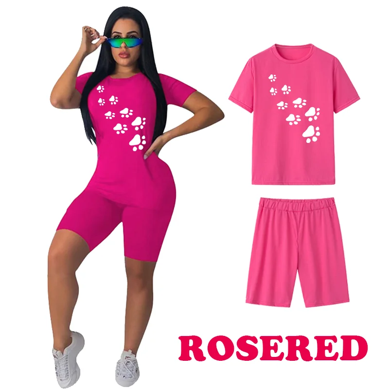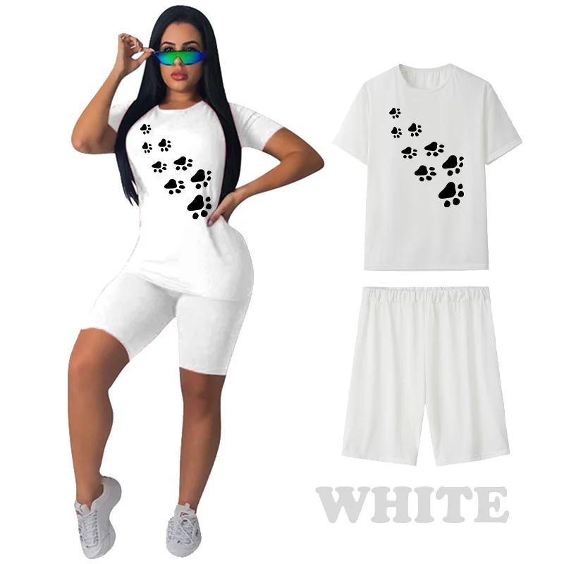 Two-piece Fashion Womens Clothing Short-sleeved Crew Neck T-shirt and Tight-fitting Shorts Tracksuit Outfit