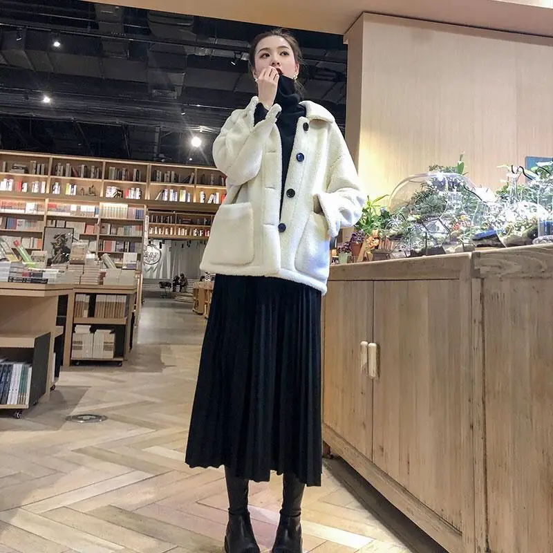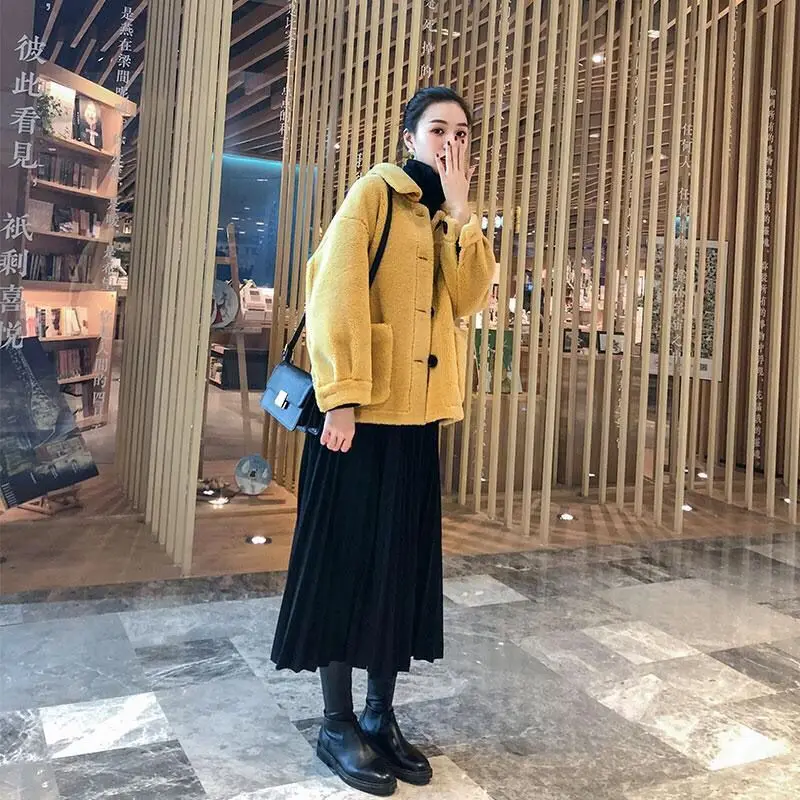 Woman Real Fur Coat Female Fashion Warm Outerwear Ladies Single Button Winter Natural Jacket Overcoat G326
