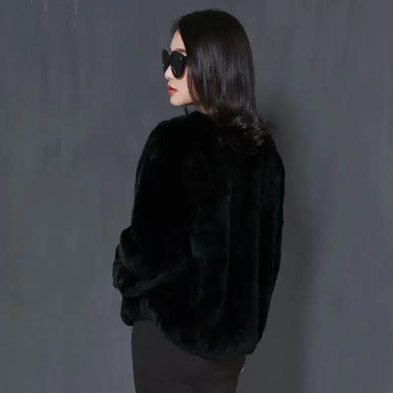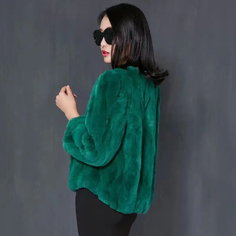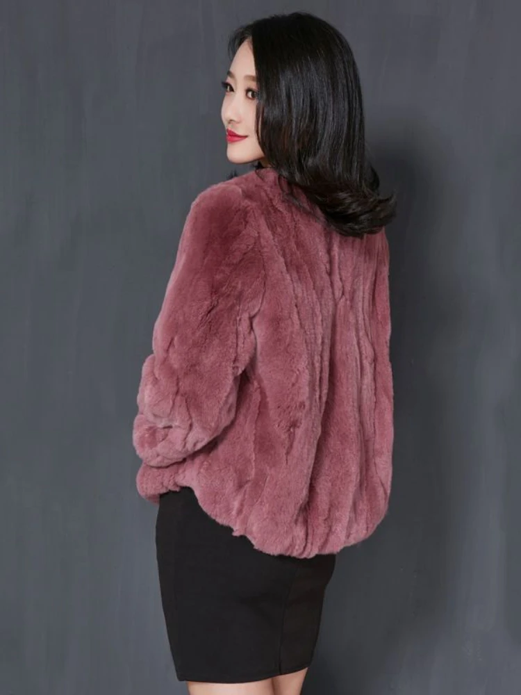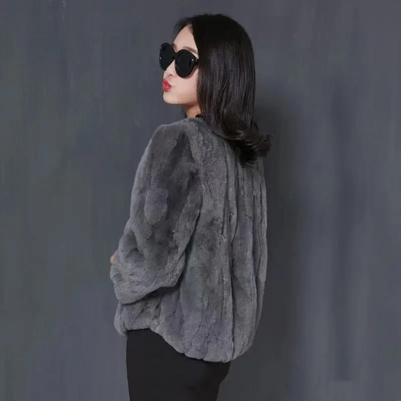Female Real Rabbit Fur Collar Coats Woman Warm Coat Casual Jacket Outwear Fashion Long Sleeve Cardigans G174