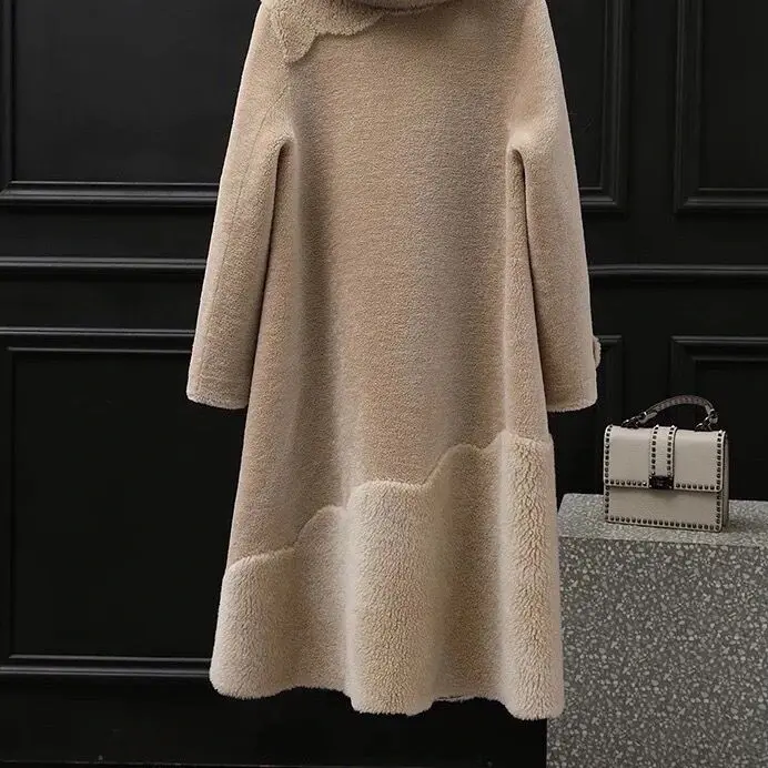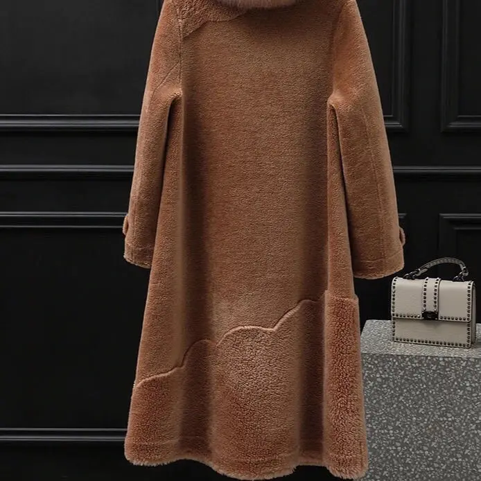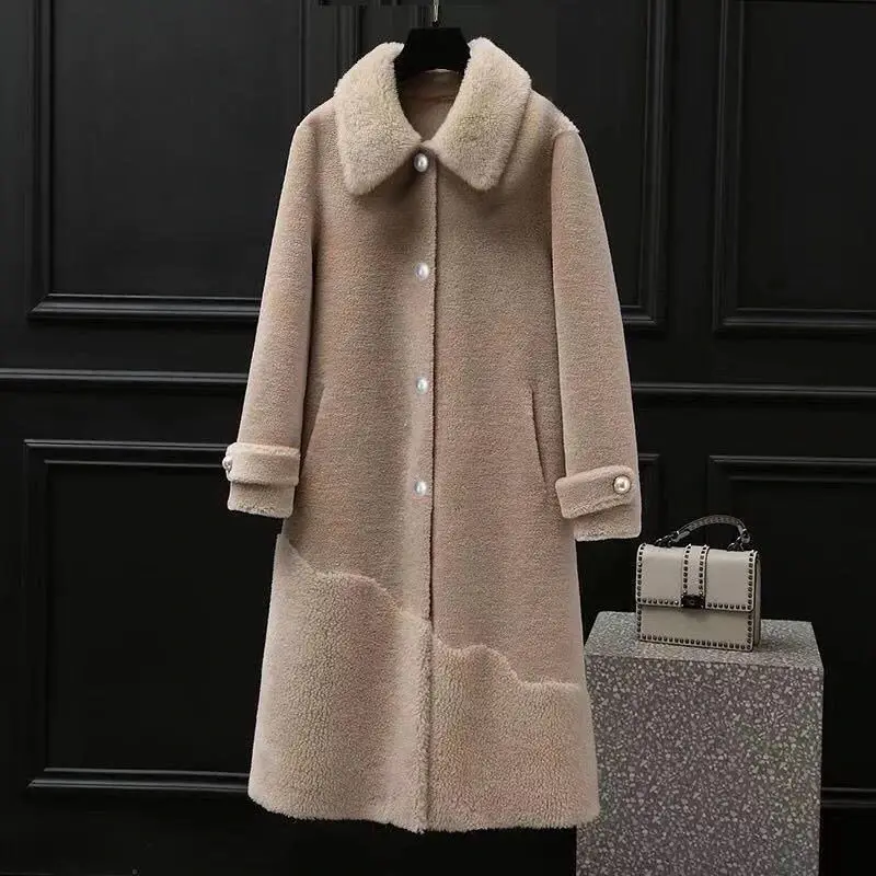 2024 New Winter Coat Women Real Fur Genuine Jacket with Round Collar Overcoat Solid Color T189