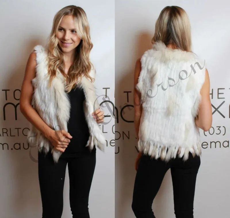 Genuine Natural Rabbit Fur Vest With Raccoon Fur Collar Women Party Waistcoat jackets knitted Outwear Lady Fashion Vest Tassels