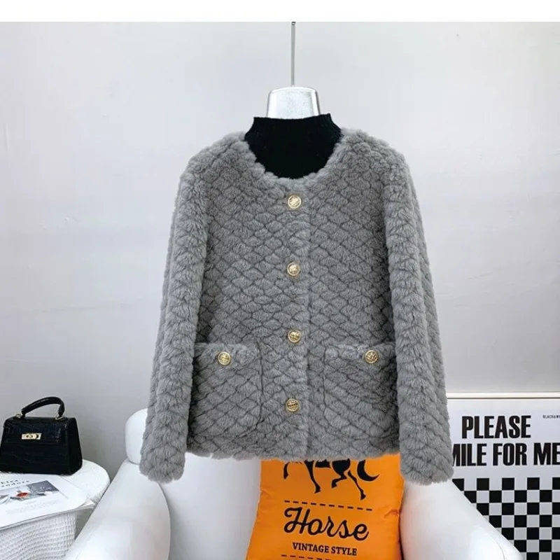 Real Fur Coat High Quality Womens Wool s Thick Warm Elegant Loose Large Size Short Outwear Winter Jacket for Women Q617