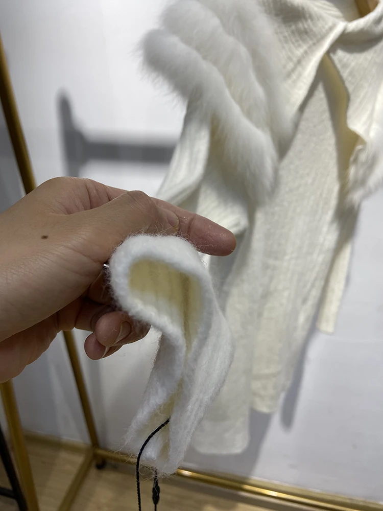 Women Autumn Real Fox Fur Turn-down Collar Knitted Oversize Sweater Real Fox Fur Solid Knitted Coat