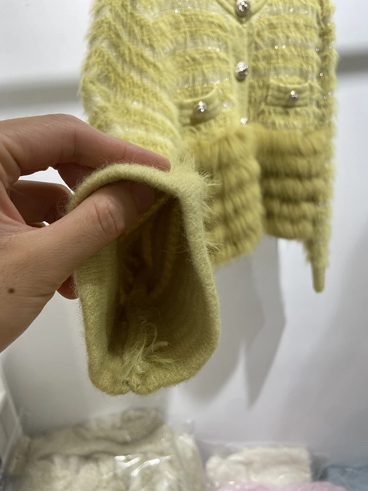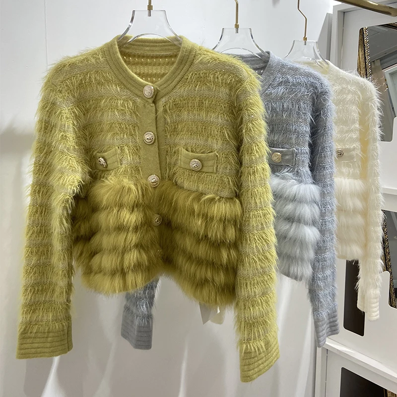 2024 Autumn Girl's Fashion Yellow Real Fox Fur Cute Sweater Real Fur Spring Lovely Women Knitted Special Design Jacket Wear
