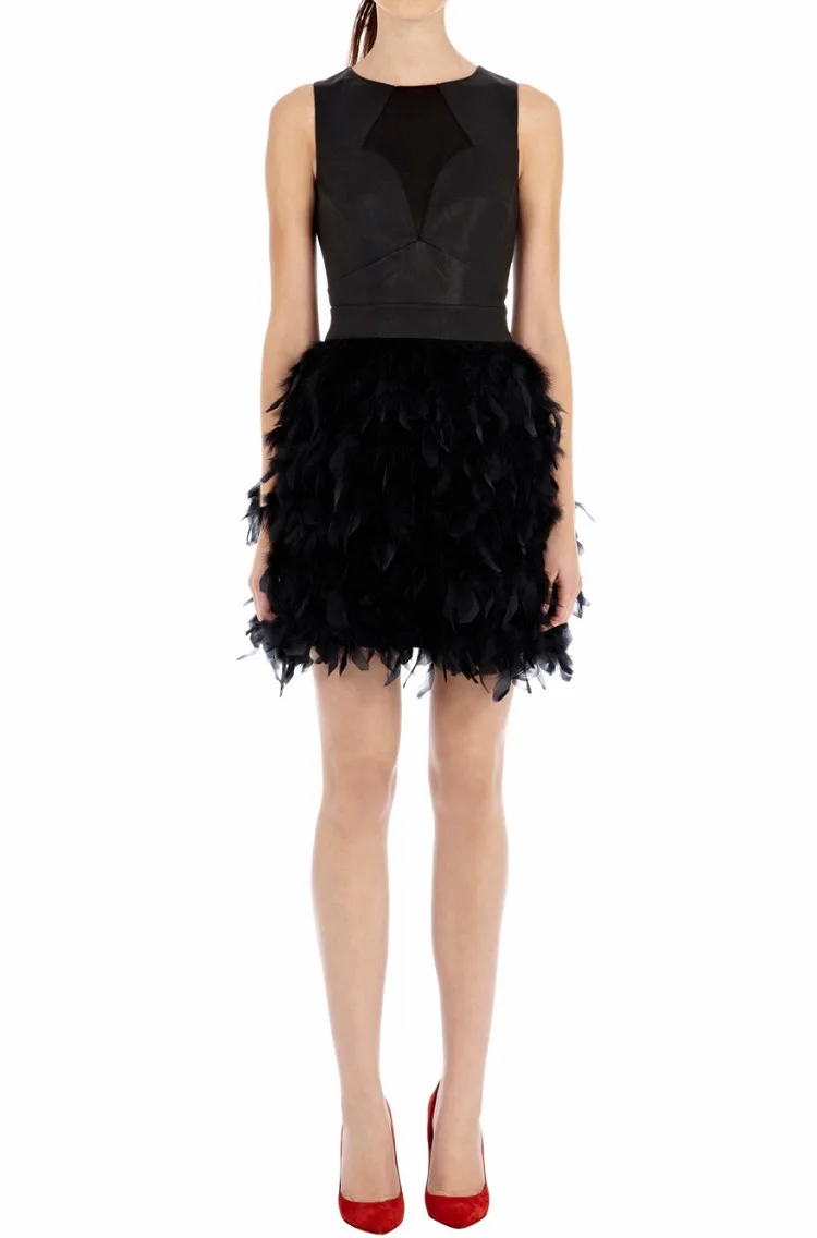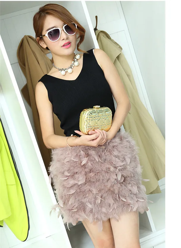 Real fur vest of natural ostrich feather fur women vintage fur skirt warm outdoor Tanks & Camis for winter 42cm length V22