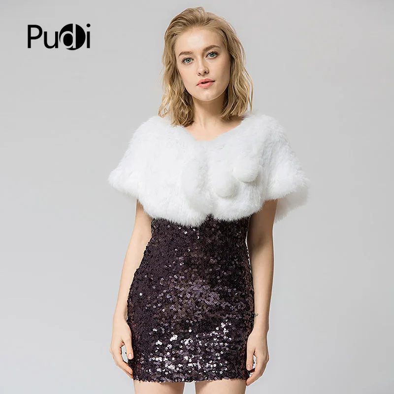 SRR005 Real Knitted Rabbit Fur Shawl Poncho Stole Shrug Cape Robe Tippet Wrap Wedding Shawl