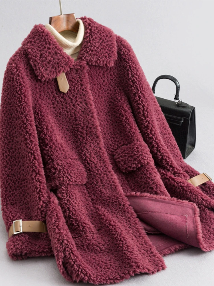 MENINA BONITA 2022 New Real Natural Wool Fur Coat Single Breasted Stand Collar Weave Winter Jacket Women Loose Warm Streetwear