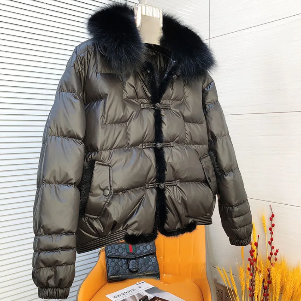 Hot selling fashionable new women winter short fox fur coat thin mink fur button down jacket