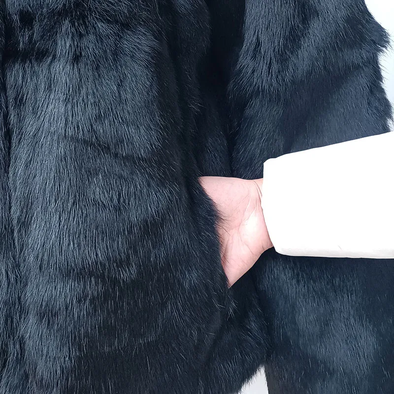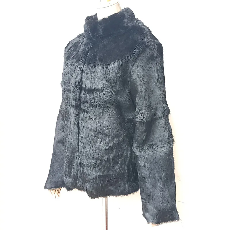 Women Real Rabbit Fur Coat Long Sleeve Short Winter Warm Genuine Rabbit Fur Jacket Outwear Turtleneck Fashion loose Natural Fur
