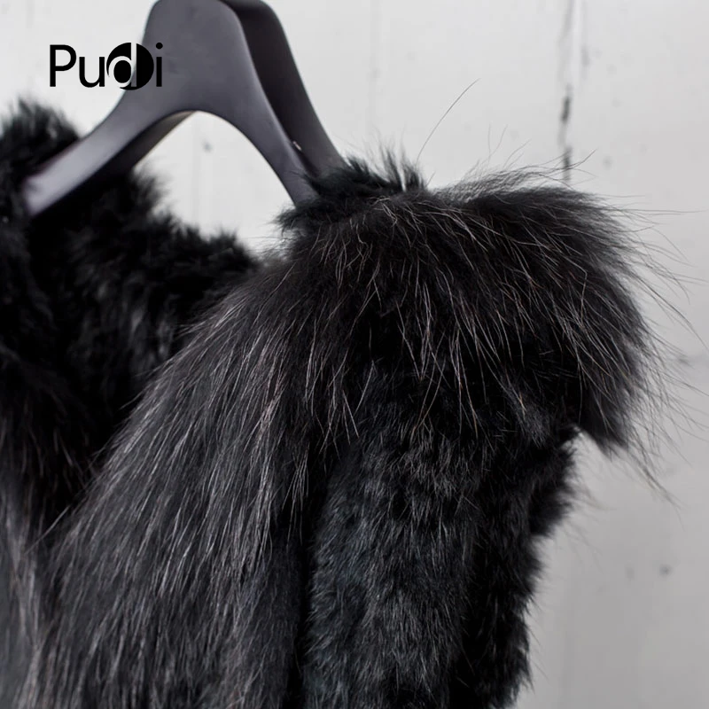 VT7001 The New winter women vest Real Classical Knitted Rabbit Fur Vest Gilet with Raccoon Fur Collar women
