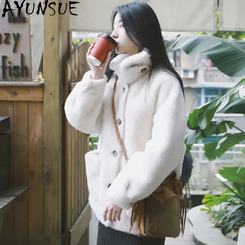 AYUNSUE Women's Fur Coat Winter 2021 Sheep Shearling Coats Female Short Wool Jackets Women Korean Style Casaco Feminino Gxy219