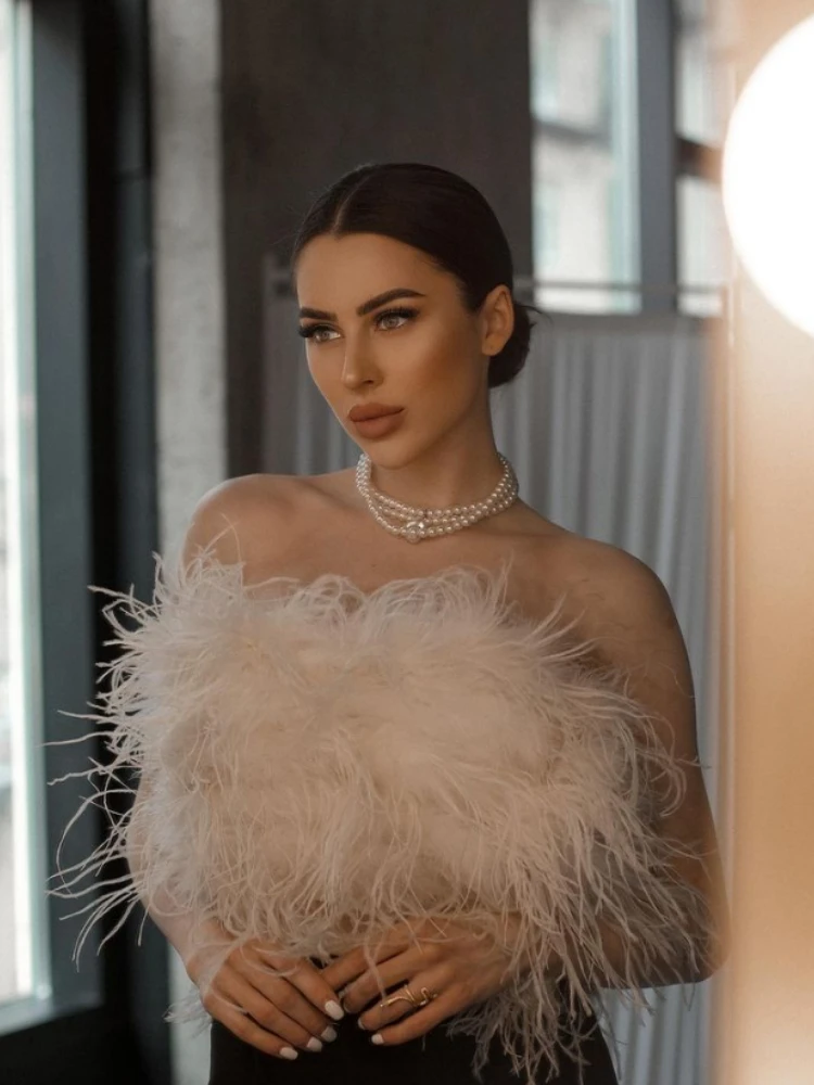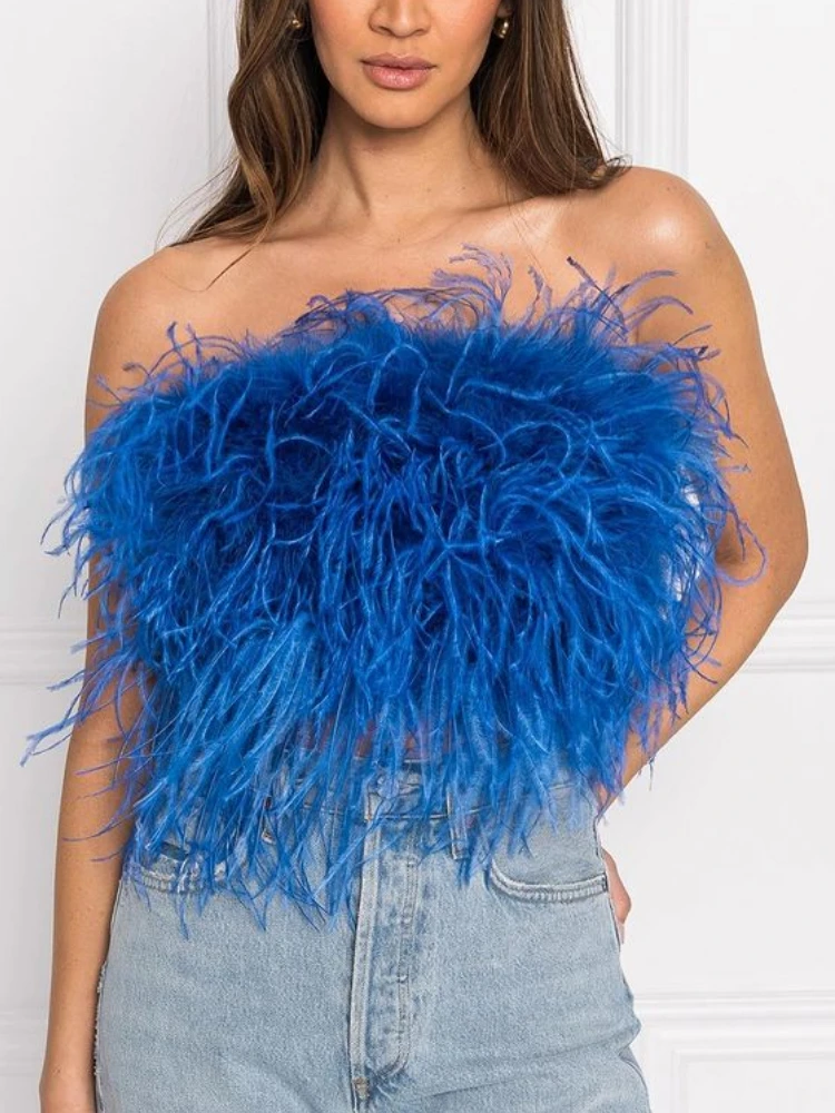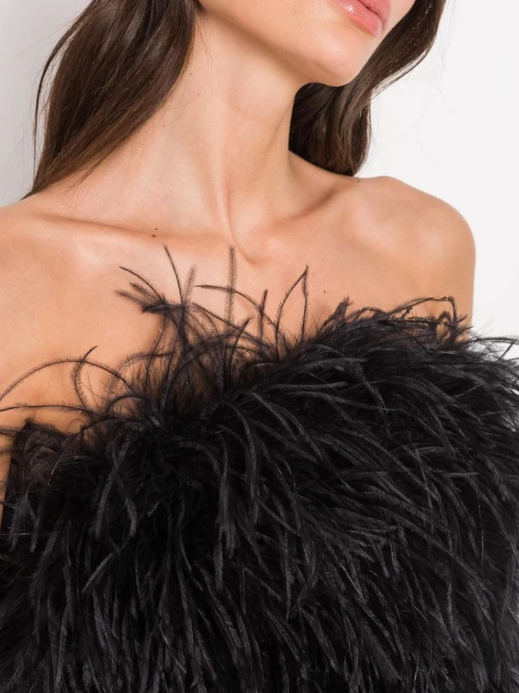MENINA BONITA 30cm Length Summer Ostrich Full Fluffy Feather Top Bra Stretch Natural Turkey Feather Underwear Lady Shirt Wrap