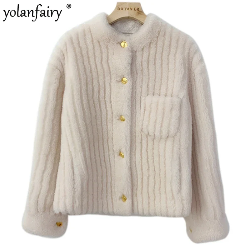 New Sheep Shearing Fur Coat Women's 2023 Fall Winter Jacket Women Standing Collar Integrated Fur Jacket Female Pure Wool Clothes