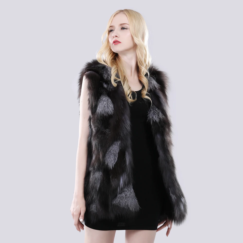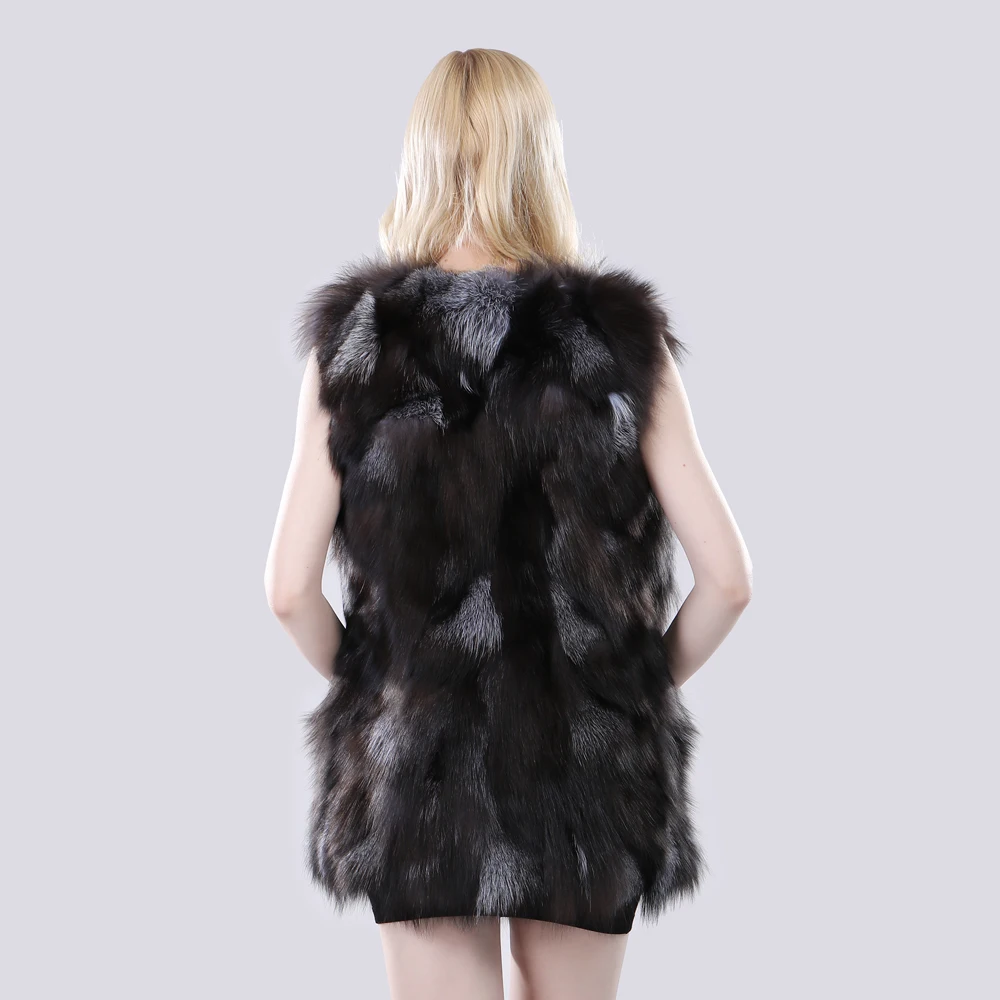 Autumn Winter Lady Fashion Real Fox Fur Vest Natural Soft Silver Fox Fur Sleeveless Jacket Women Warm 100% Genuine Fox Fur Gilet