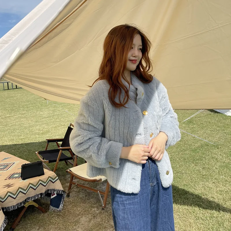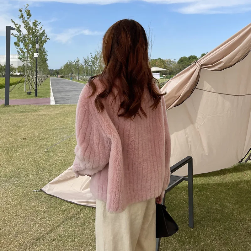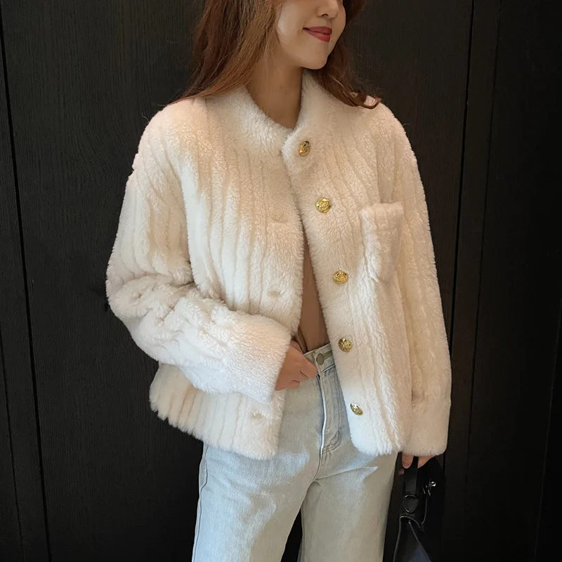 MENINA BONITA 2022 Fashion Winter Jacket Women Real Fur Coat Natural Lamb Wool Thick Stand-up Collar Pocket Streetwear Outerwear