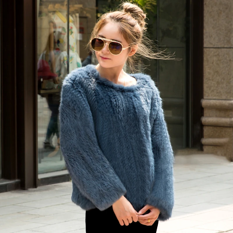 Real Rabbit Fur sweater Women Knitted Rabbit Fur Handmade Knitted Female Trend Fur coat Nature Waistcoat Fur