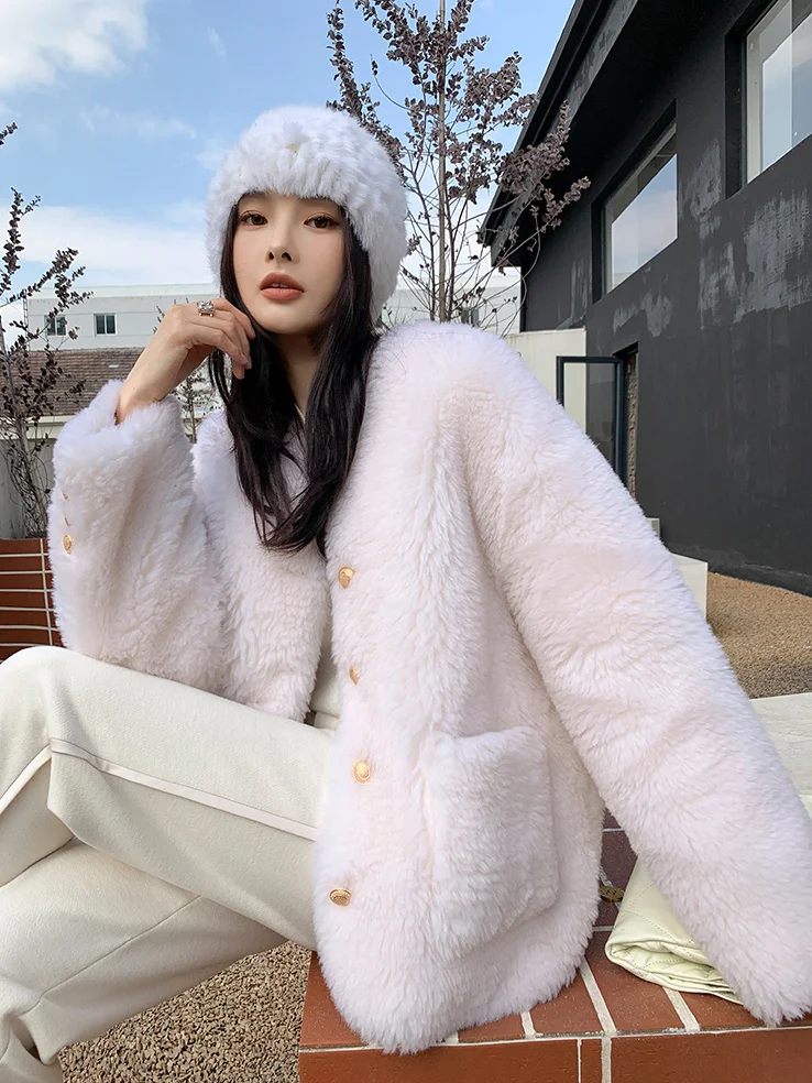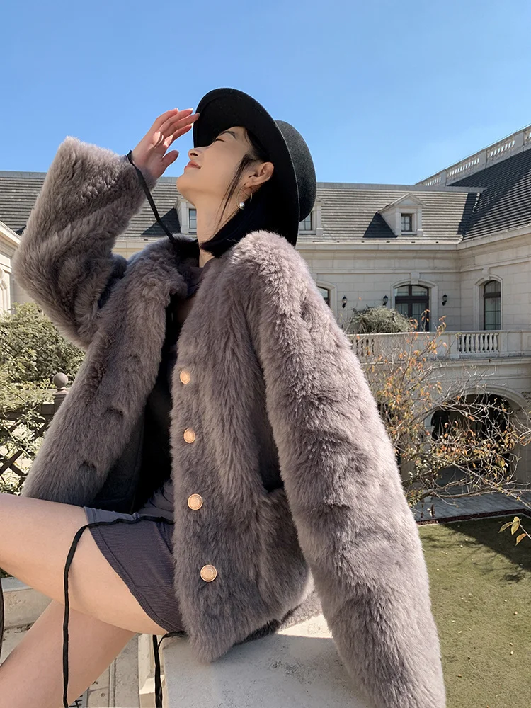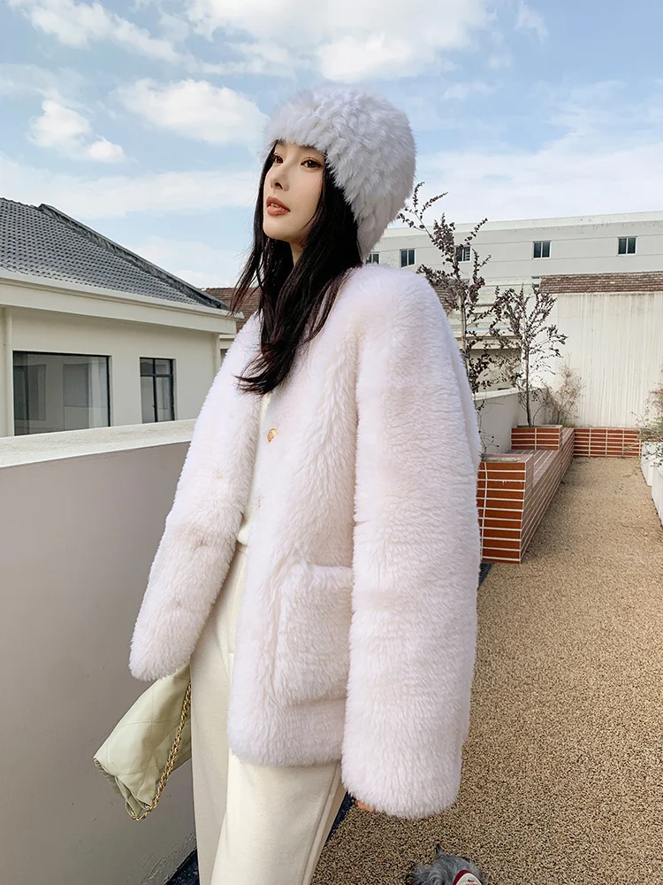 2024 New Style Real Fur Coat Jacket Female Winter Warm Leather High Quality Oversize Ladies Outerwear P23