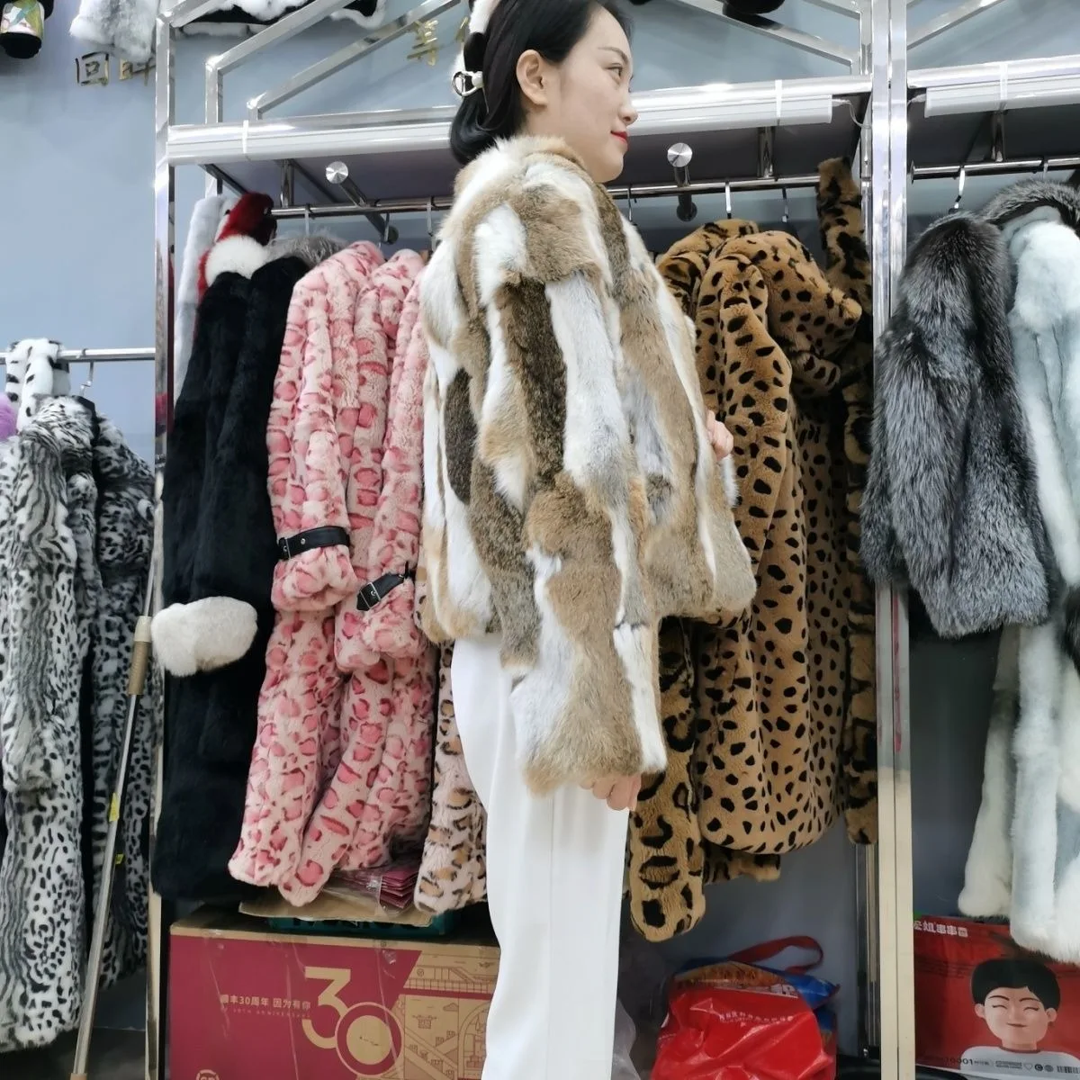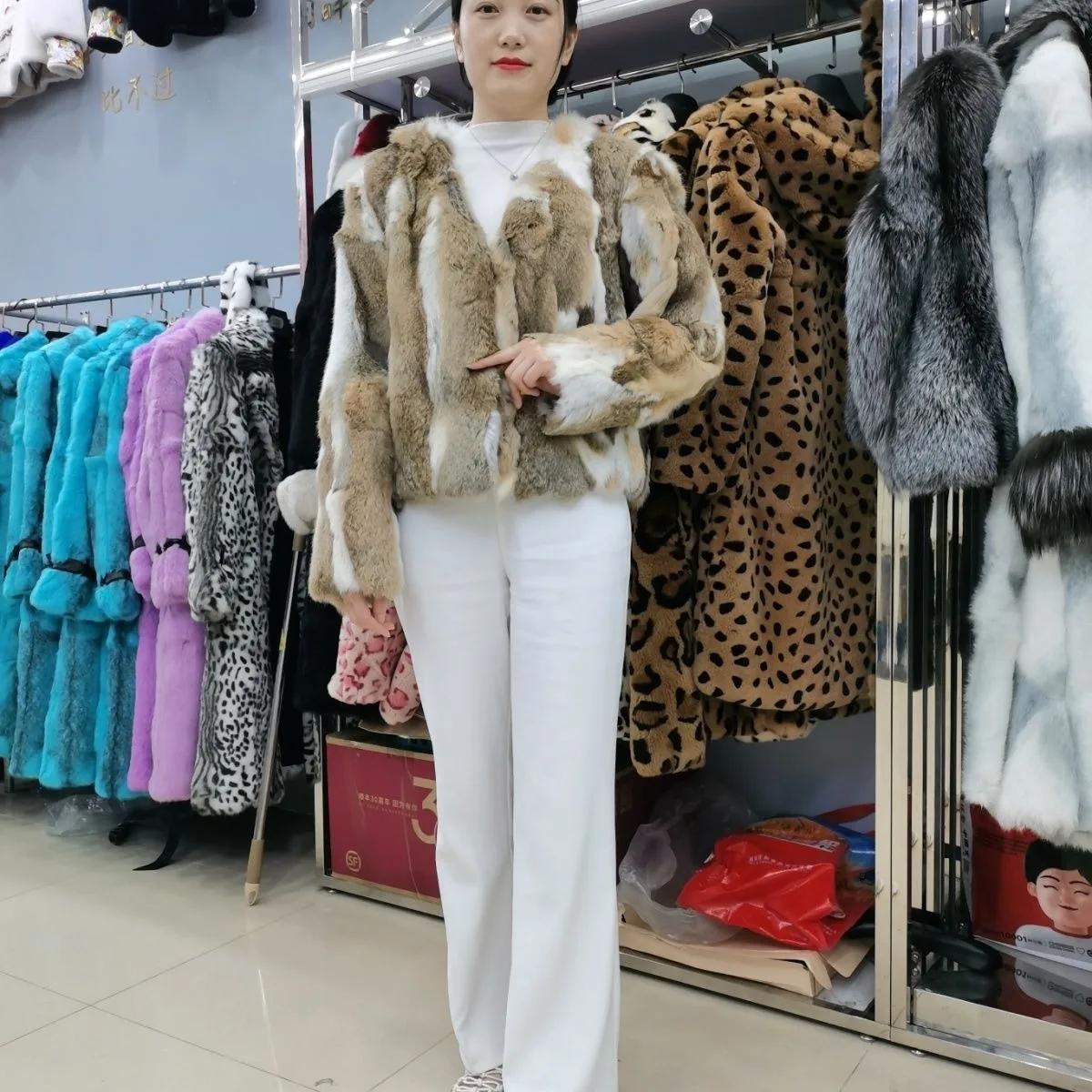 Hot selling Real rabbit fur original color short style fashionable new grass rabbit stitching real fur coat can be customized