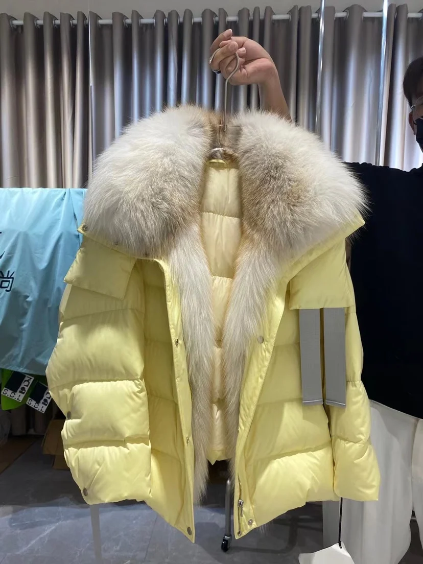 New Fashion Natural Real Fox Fur Collar 90% White Goose Down Jacket Winter Women Warm Loose Coat Thick Luxury Outerwear